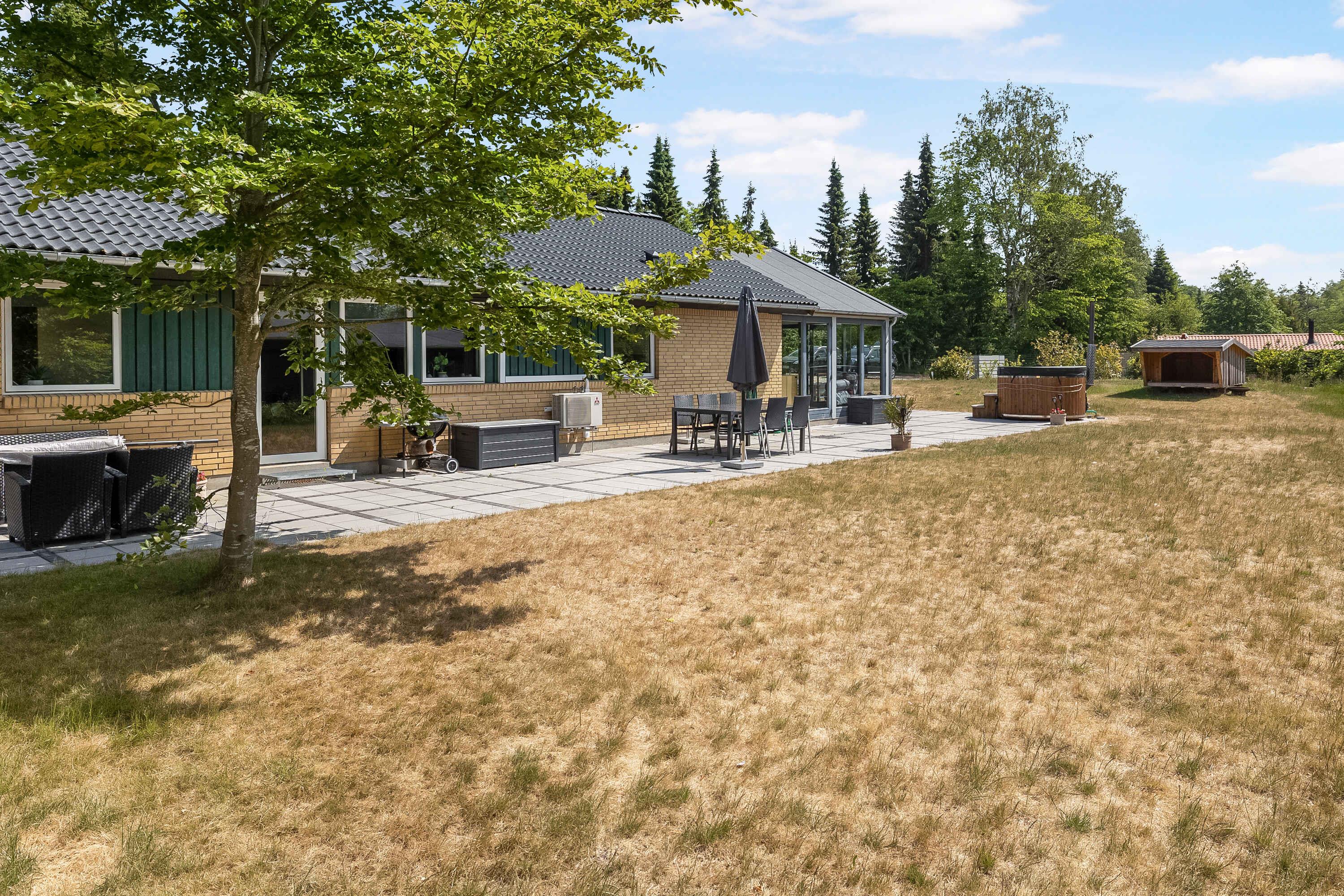 Stort sommerhus med vildmarksbad og shelter ved Vig Lyng, perfekt til familieferie i naturskønne omgivelser.