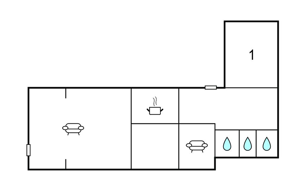 Opholdsstue - 1 Soveplads. (Enkeltseng(e)). 2 Sovepladser. (Etageseng(e)). 1 Soveplads. (Madras).