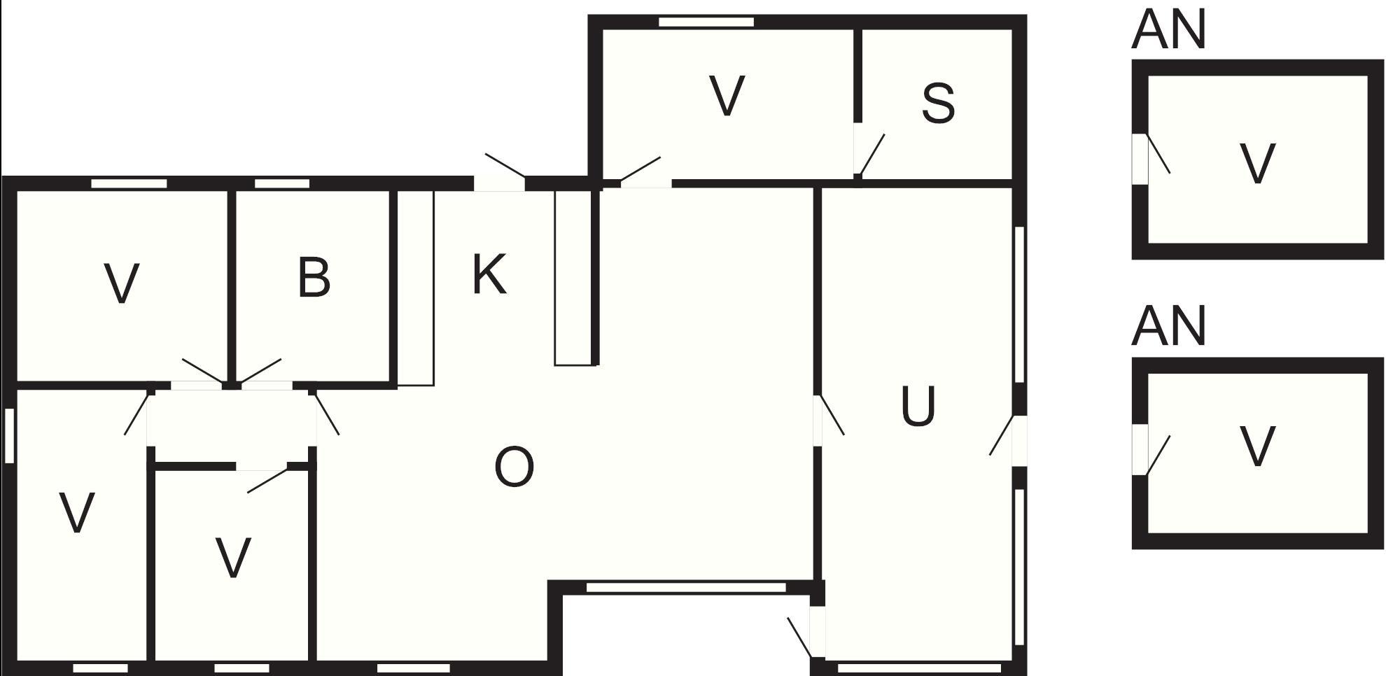 4 Soveværelser: (1DS)+(2K)+(1S)+(1S)