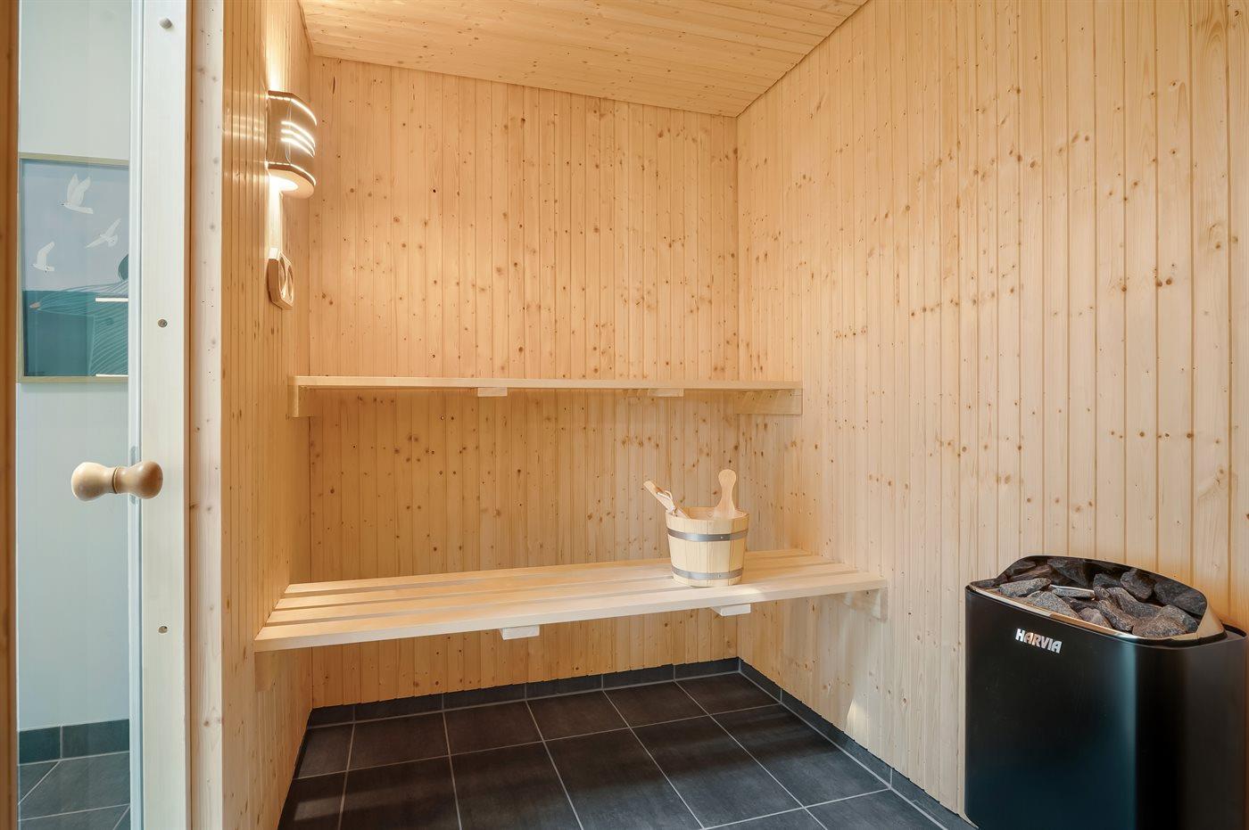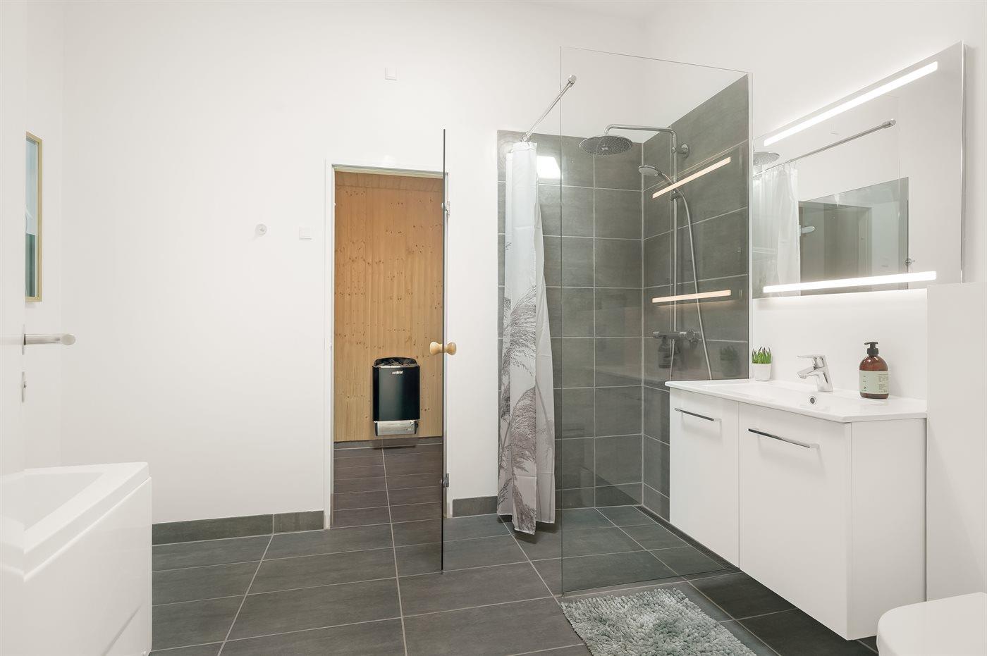 Der er 2 badeværelser med bruseniche og 2 toiletter. Der er gulvvarme på alle badeværelser. I saunaen er der mulighed for afslapning.