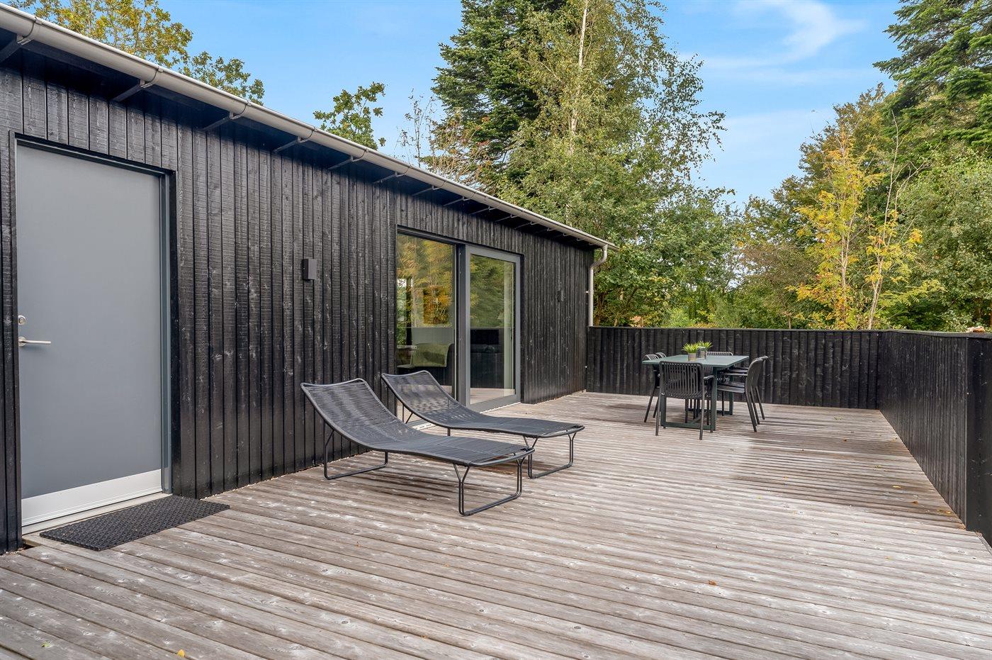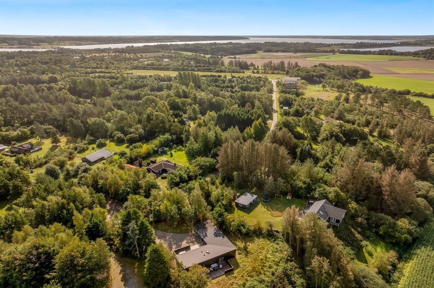 Ferieboligen er beliggende på en 3427 m² stor grund i skov/plantage. Der er 500 m til fjorden. Der er en badebro i nærheden. Nærmeste forretning er beliggende i en afstand af 3500 m. Til ferieboligen hører åbent terrasseareal. Der er carport til rådighed. Parkering ved ferieboligen.