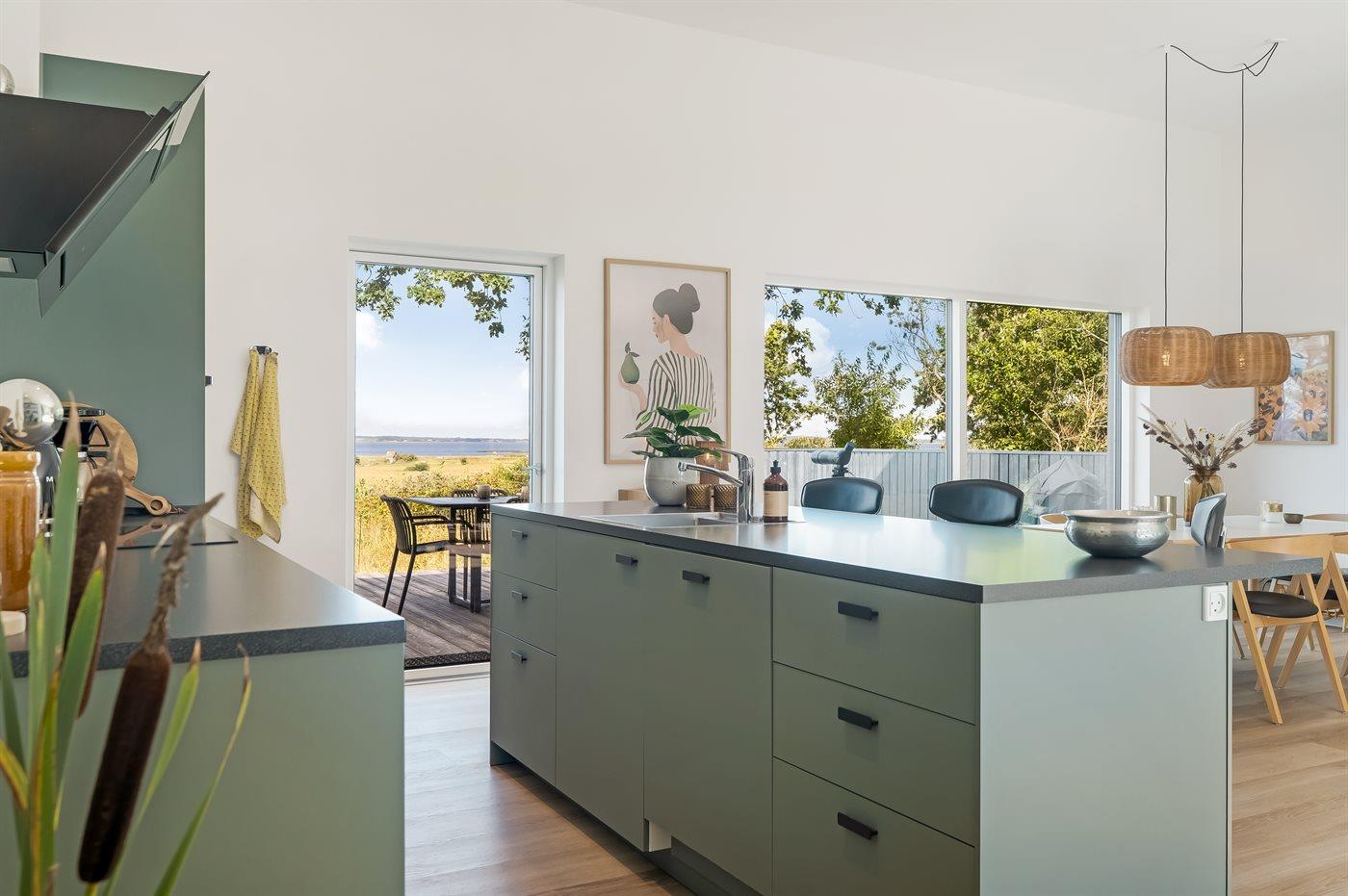 Køkkenet er udstyret med 1 køleskab samt Frysekapacitet på 40 liter. Der er 4 induktionskogeplader, varmluftovn, mikrobølgeovn, Airfryer samt opvaskemaskine.