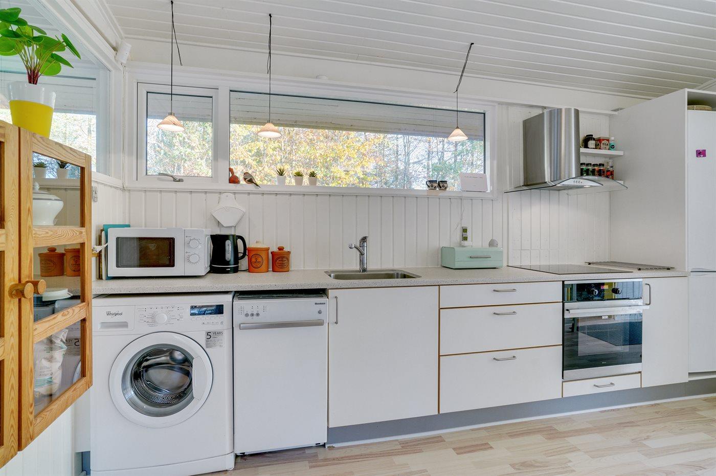 Køkkenet er udstyret med 1 køleskab. Der er 4 induktionskogeplader, varmluftovn, mikrobølgeovn samt opvaskemaskine.