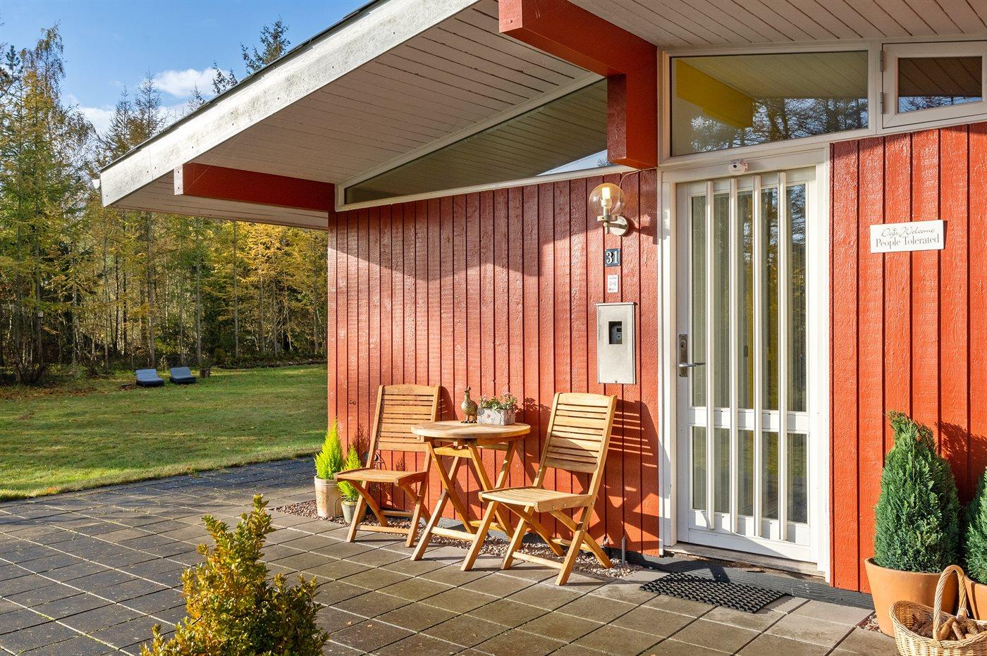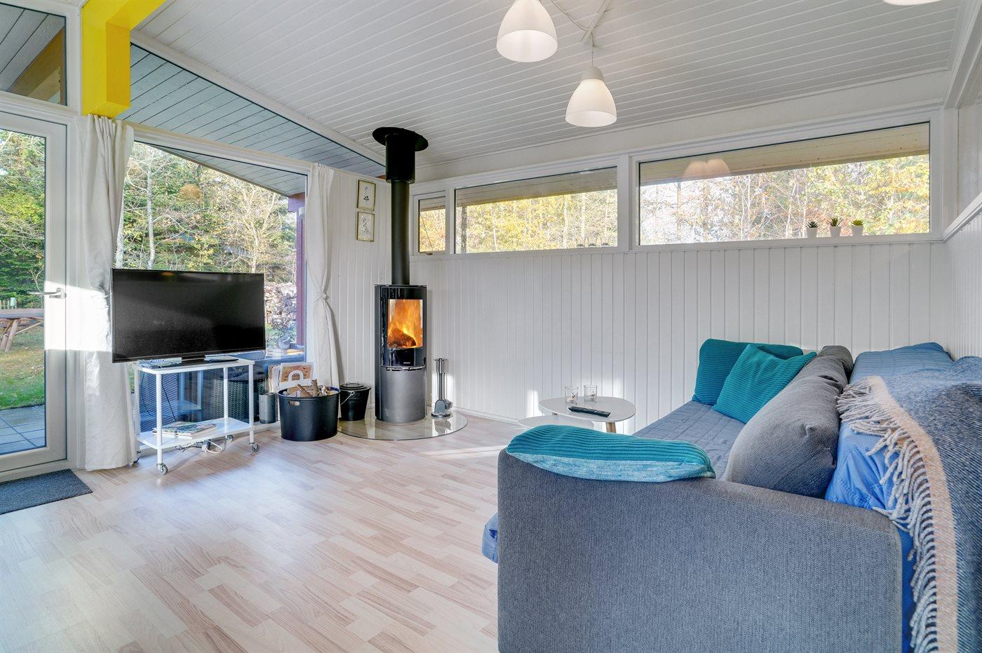 Dette feriehus ligger ugeneret inde blandt træerne. Sommerhuset er hyggeligt indrettet og kan have 2 af menneskets bedste venner med. En kort gåtur og så er du ved fjorden og kan få godt med vind i håret.