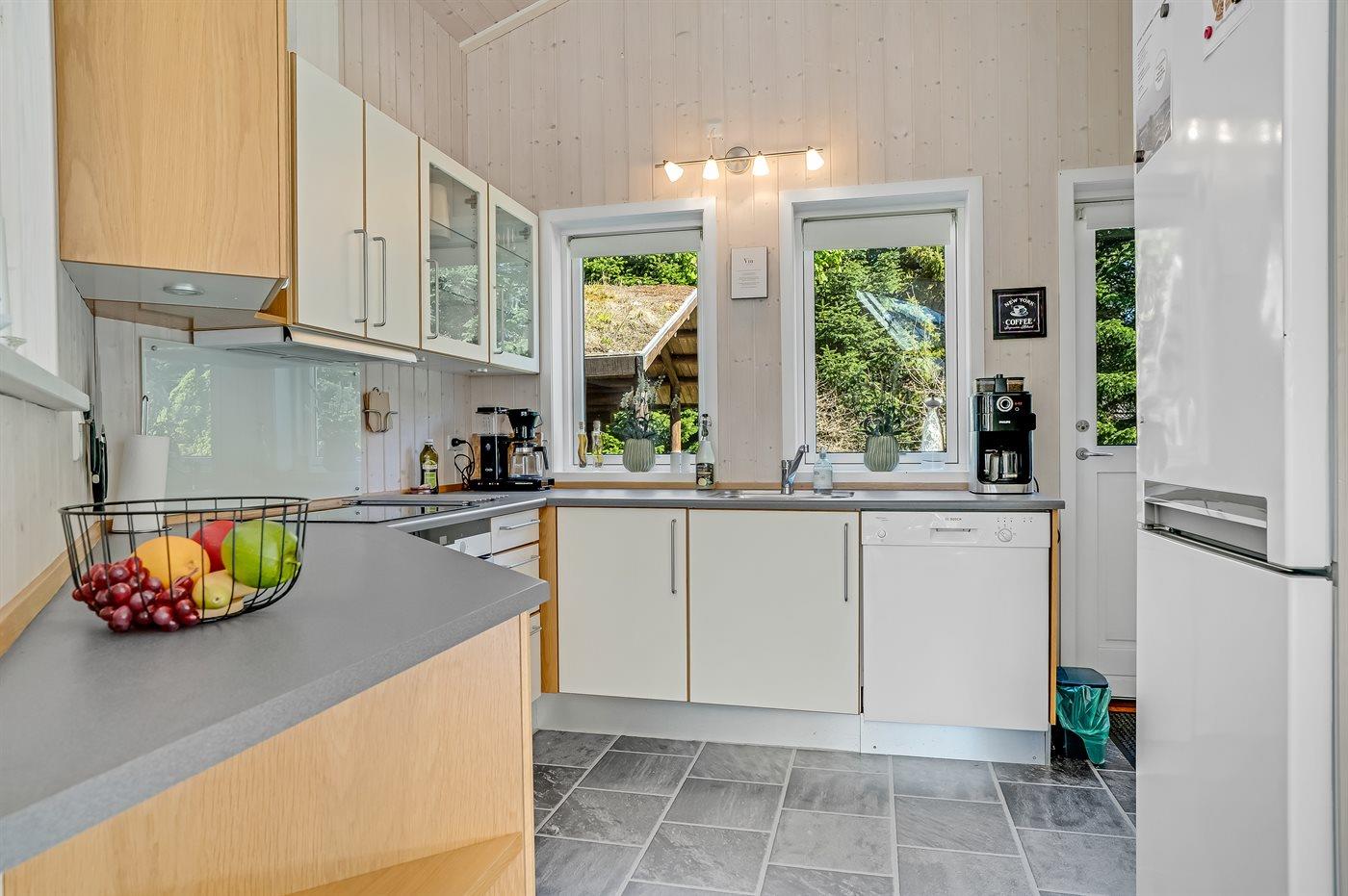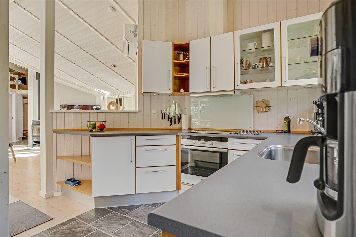 Køkkenet er udstyret med 1 køleskab. Der er 4 keramiske kogeplader, varmluftovn, mikrobølgeovn samt opvaskemaskine.