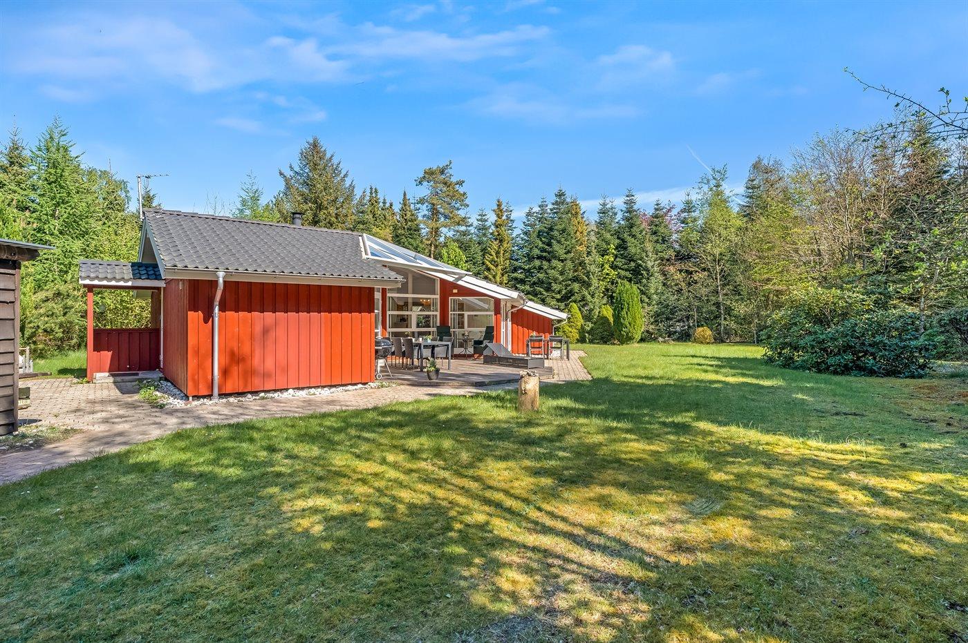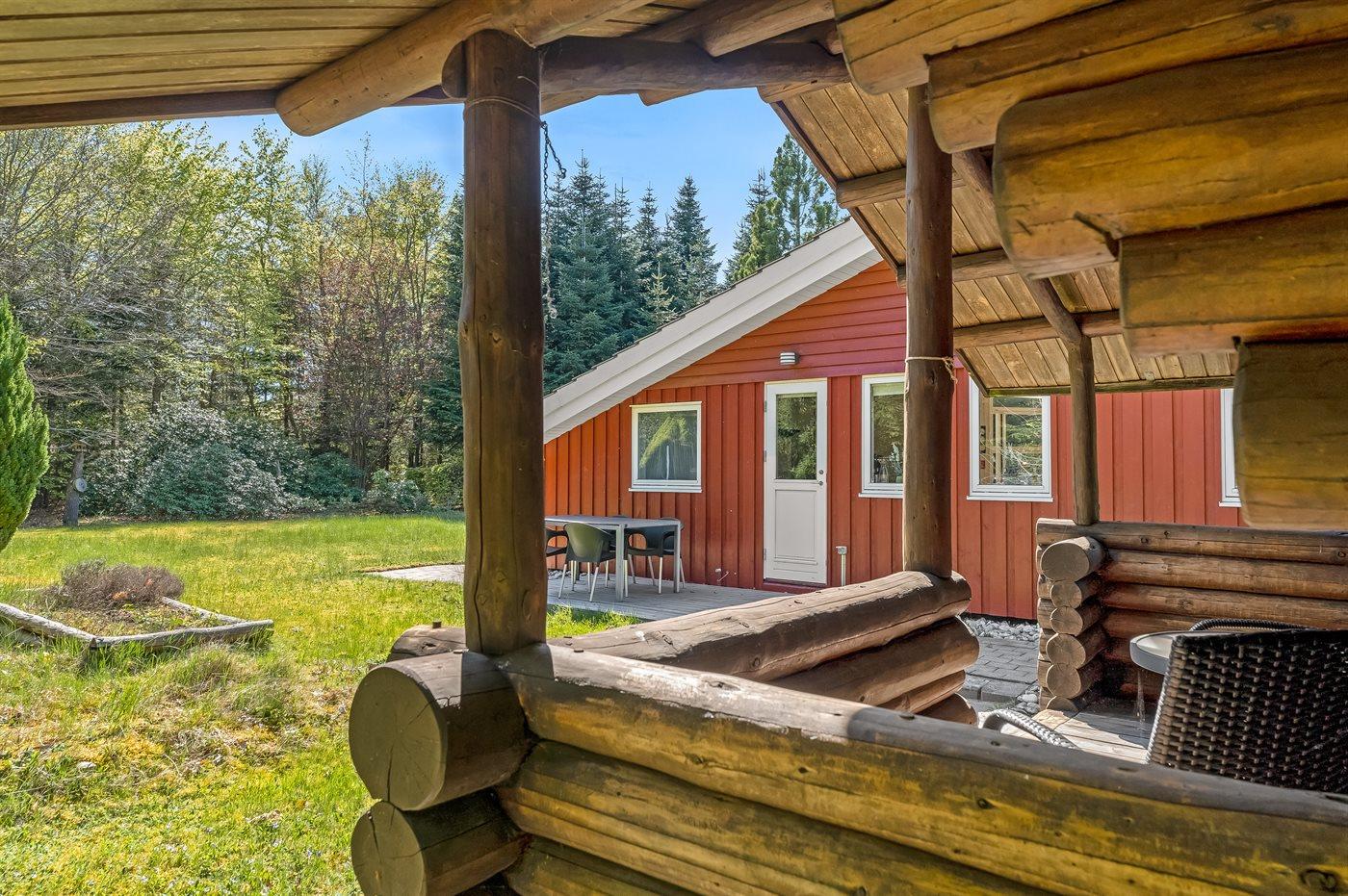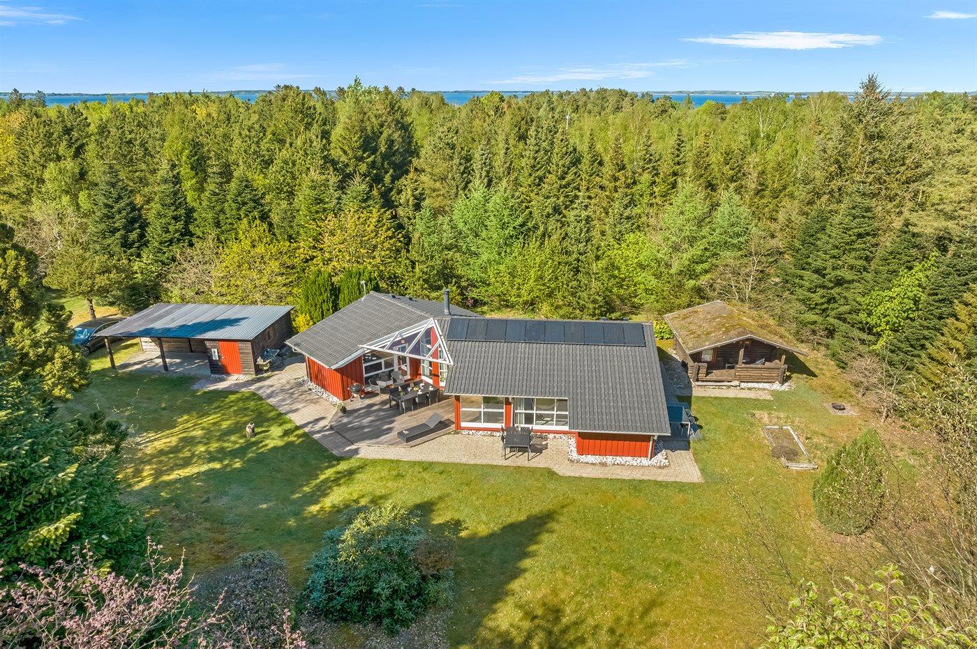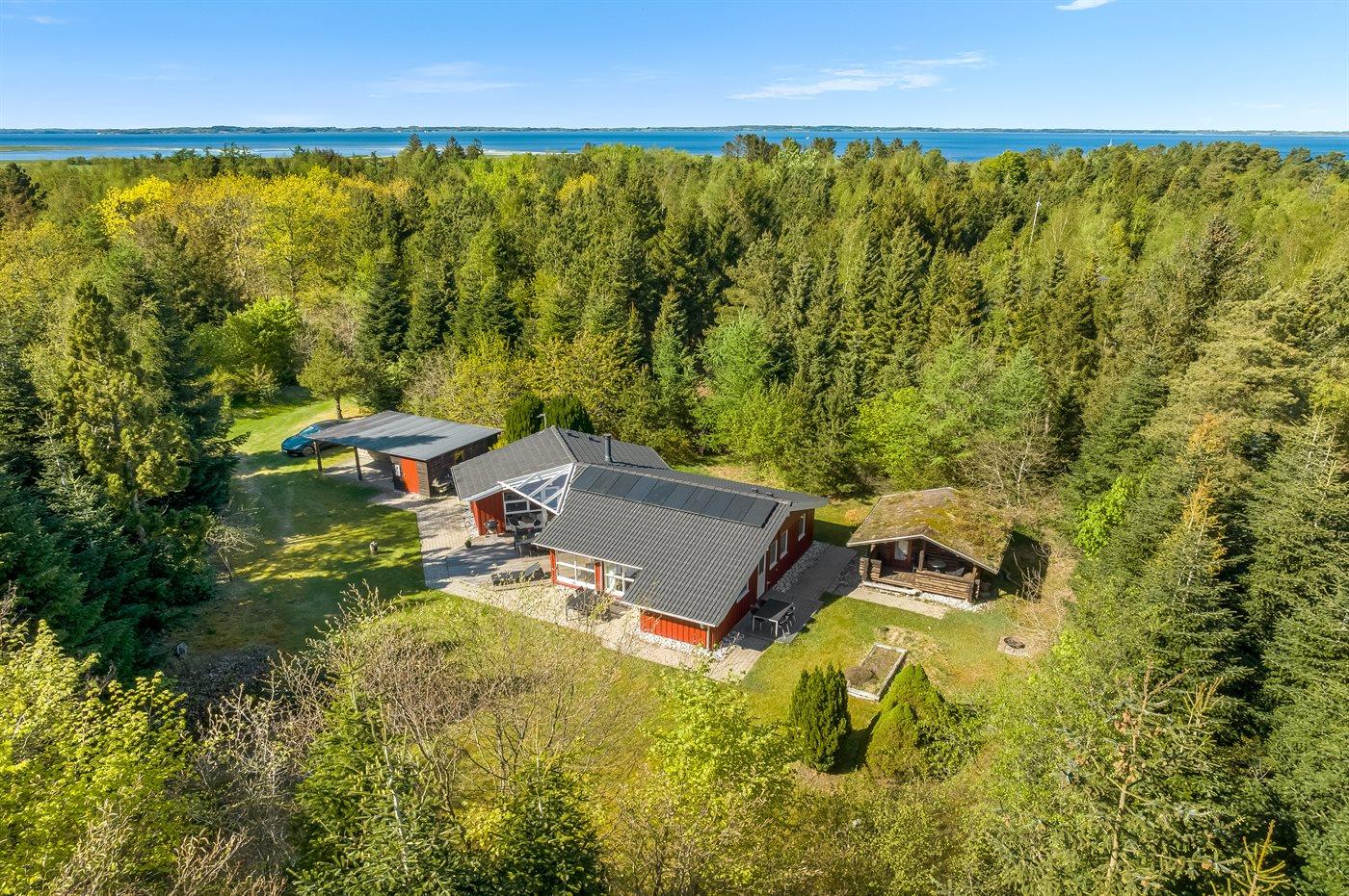 Ferieboligen er beliggende på en 3228 m² stor grund i skov/plantage. Der er 500 m til fjorden. Nærmeste forretning er beliggende i en afstand af 4000 m. Der er en golfbane i en afstand af 5000 m. Til ferieboligen hører åbent terrasseareal. Desuden er der overdækket terrasse. Der er redskabsrum. Parkering ved ferieboligen.