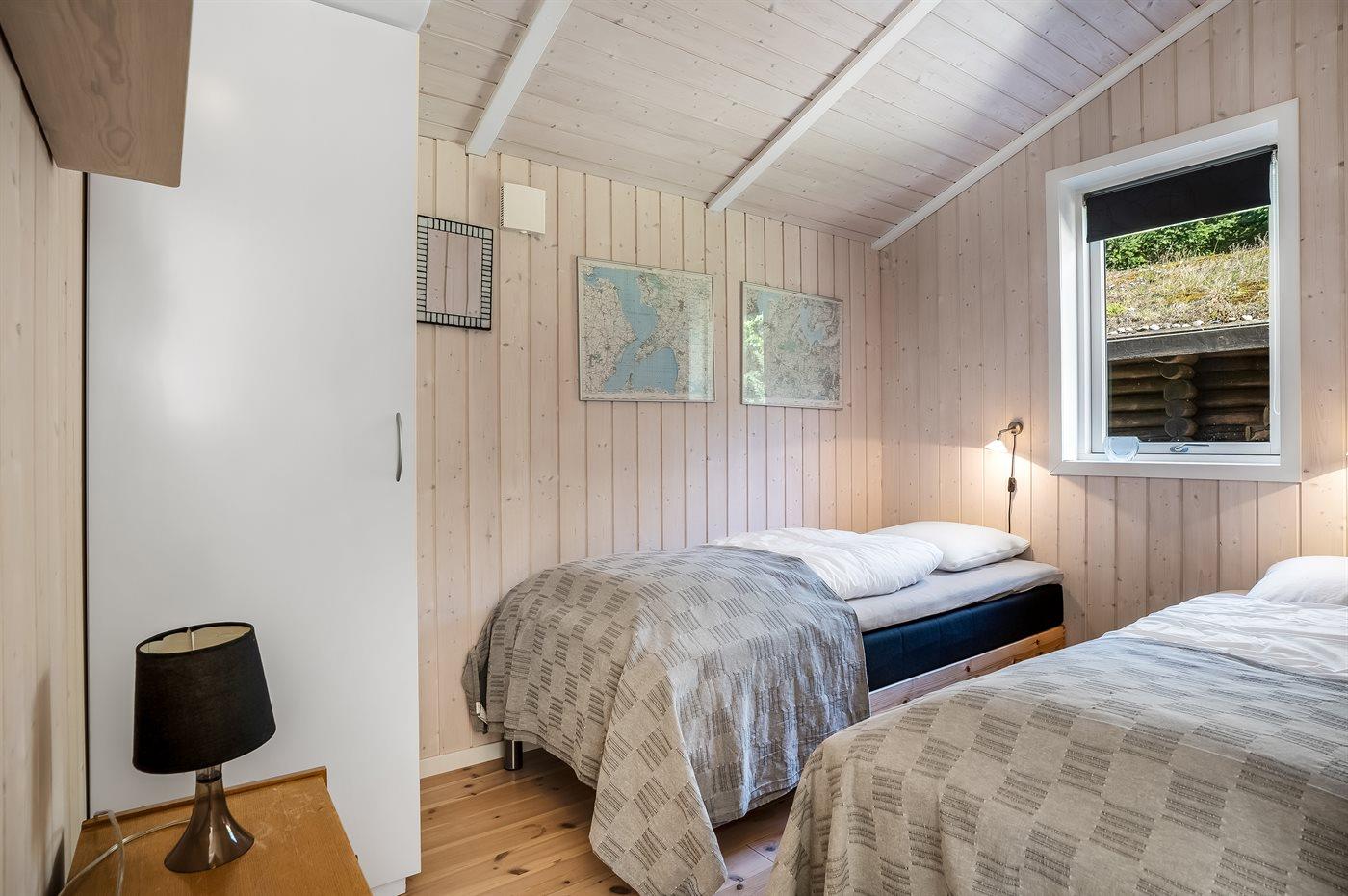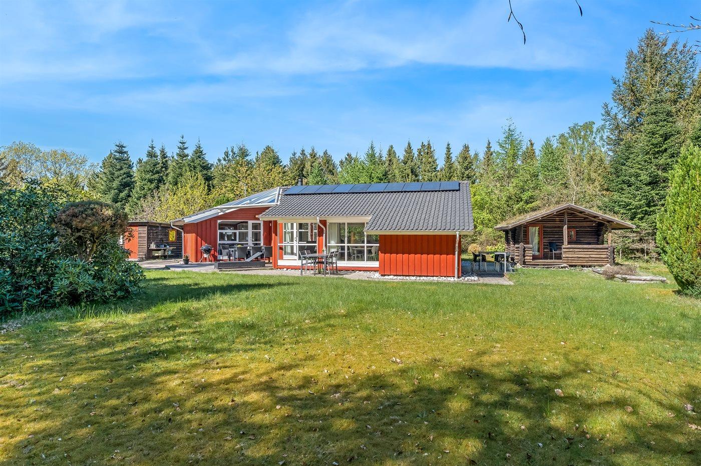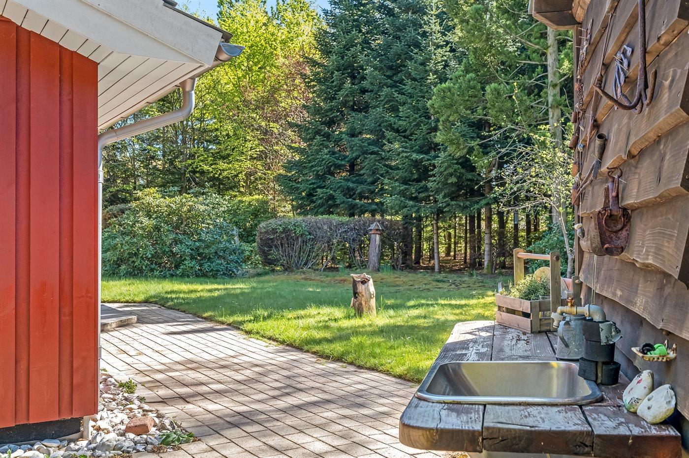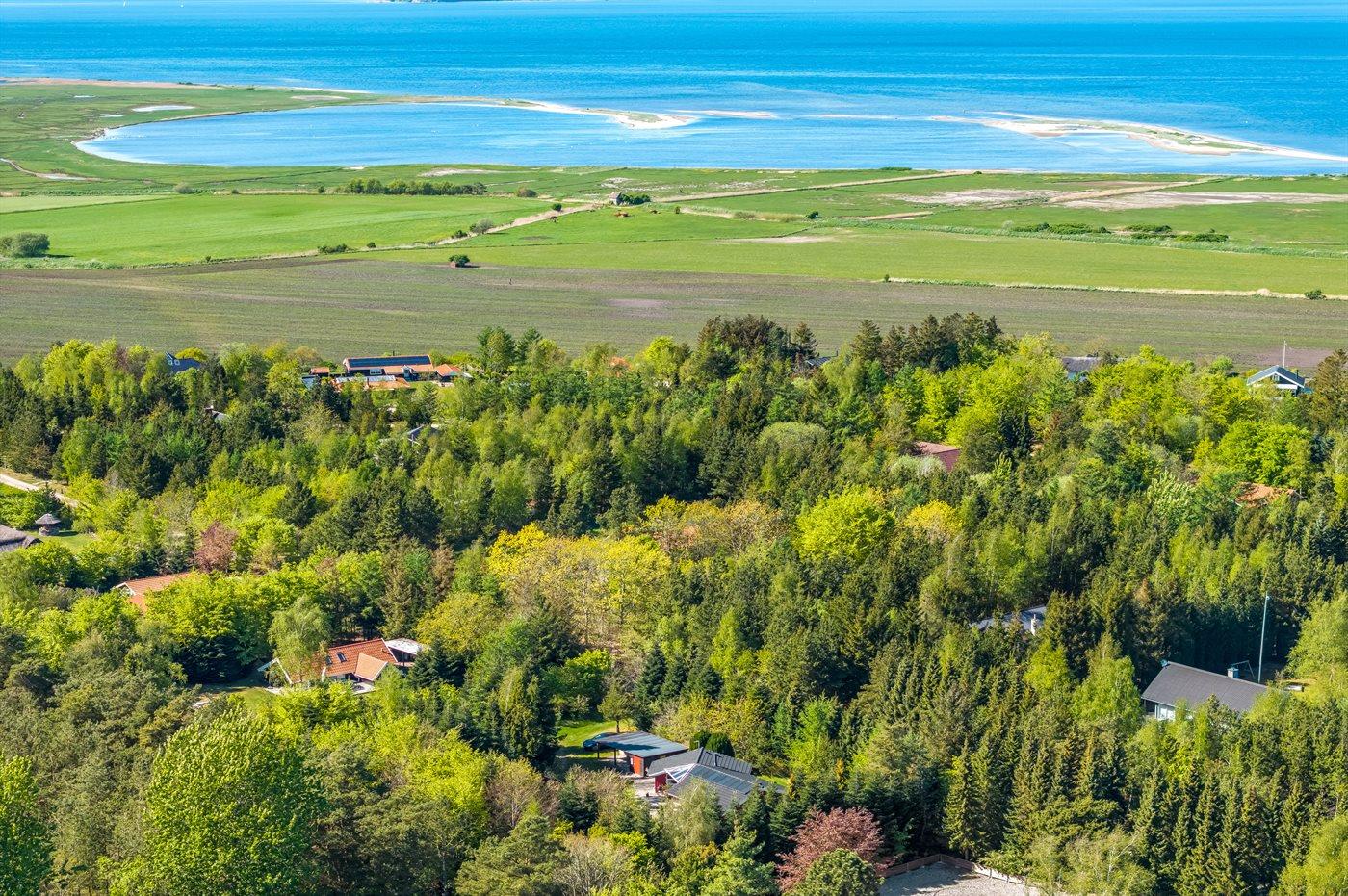Ferieboligen er beliggende på en 3228 m² stor grund i skov/plantage. Der er 500 m til fjorden. Nærmeste forretning er beliggende i en afstand af 4000 m. Der er en golfbane i en afstand af 5000 m. Til ferieboligen hører åbent terrasseareal. Desuden er der overdækket terrasse. Der er redskabsrum. Parkering ved ferieboligen.