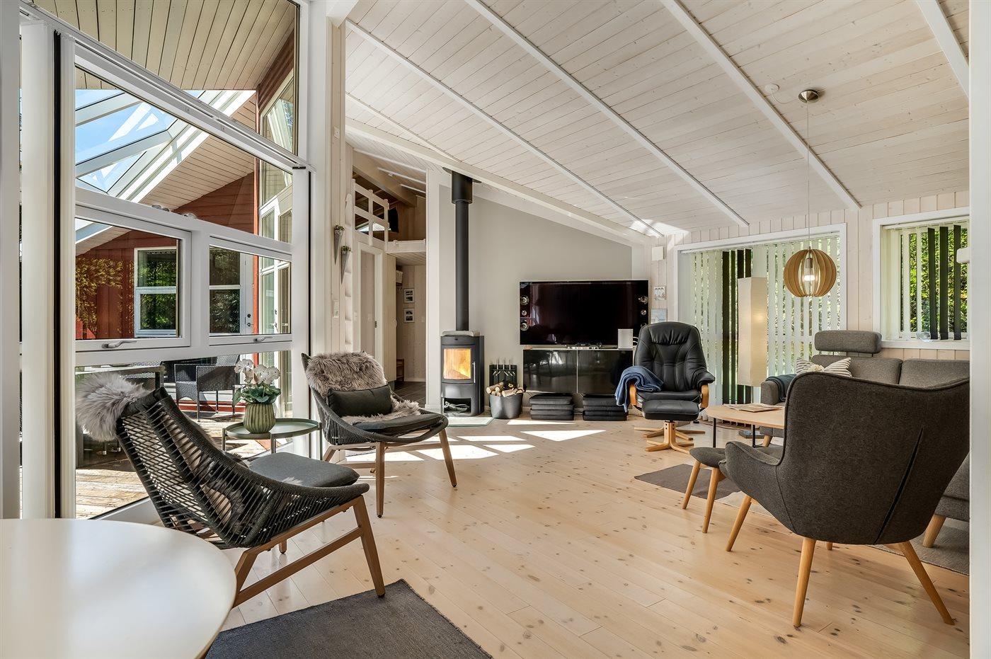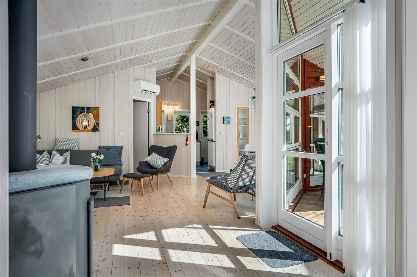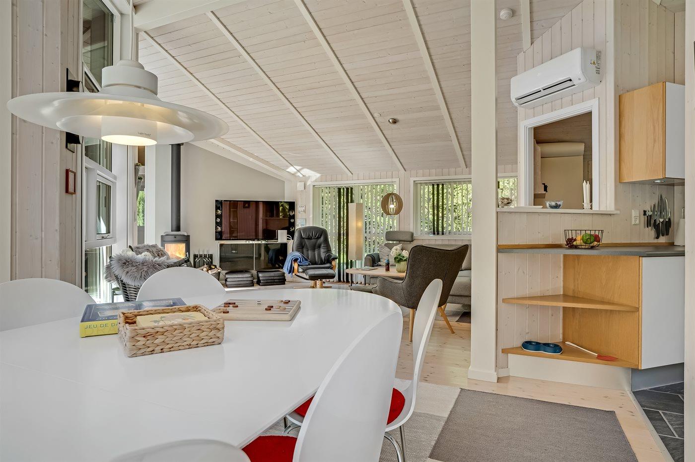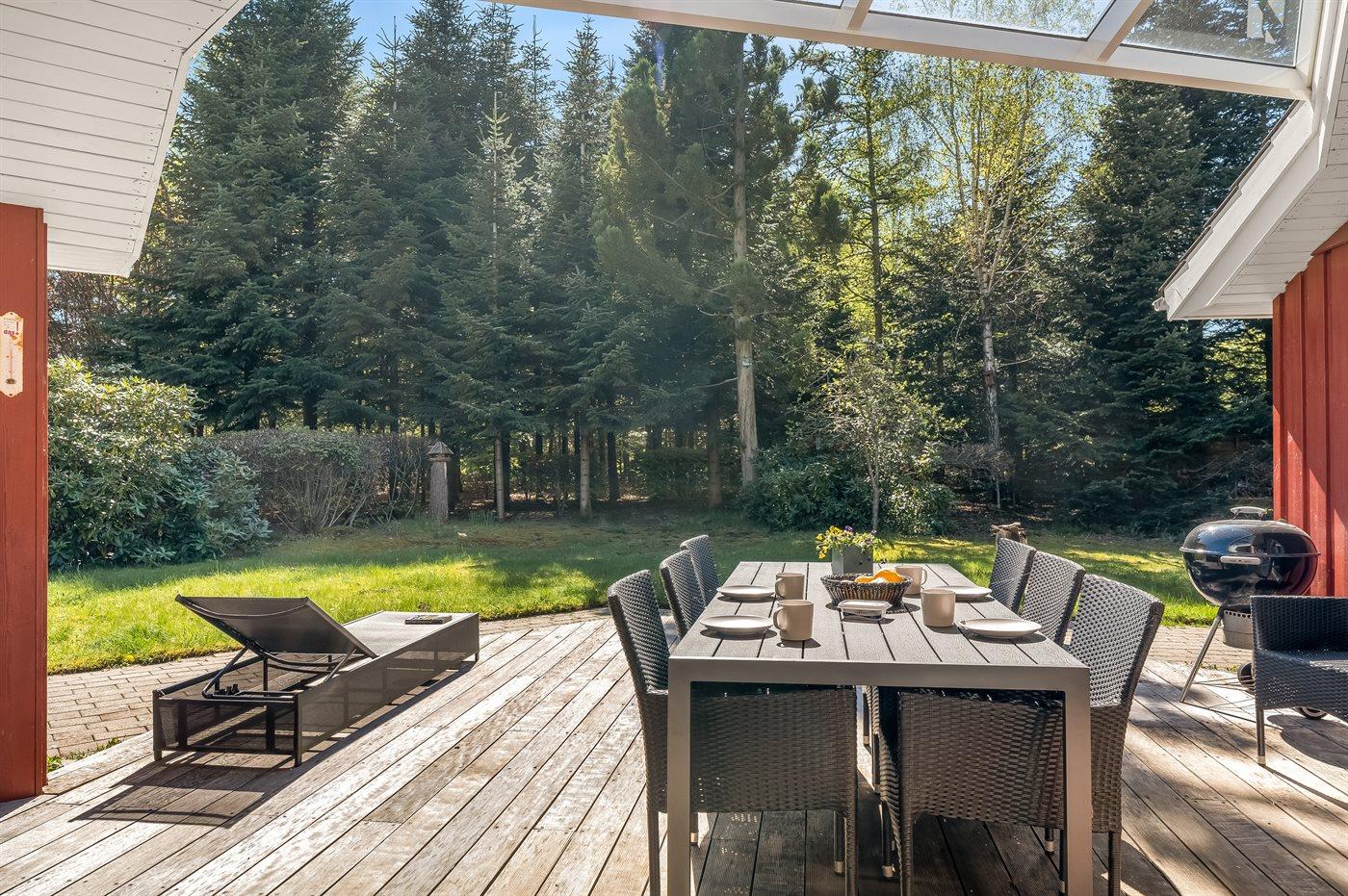 I feriehuset er der direkt udgang fra køkkenet til en hyggelig, østvendt morgenterrasse, mens dagene og de lange sommeraftner kan nydes på den store, sydvendte terrasse.