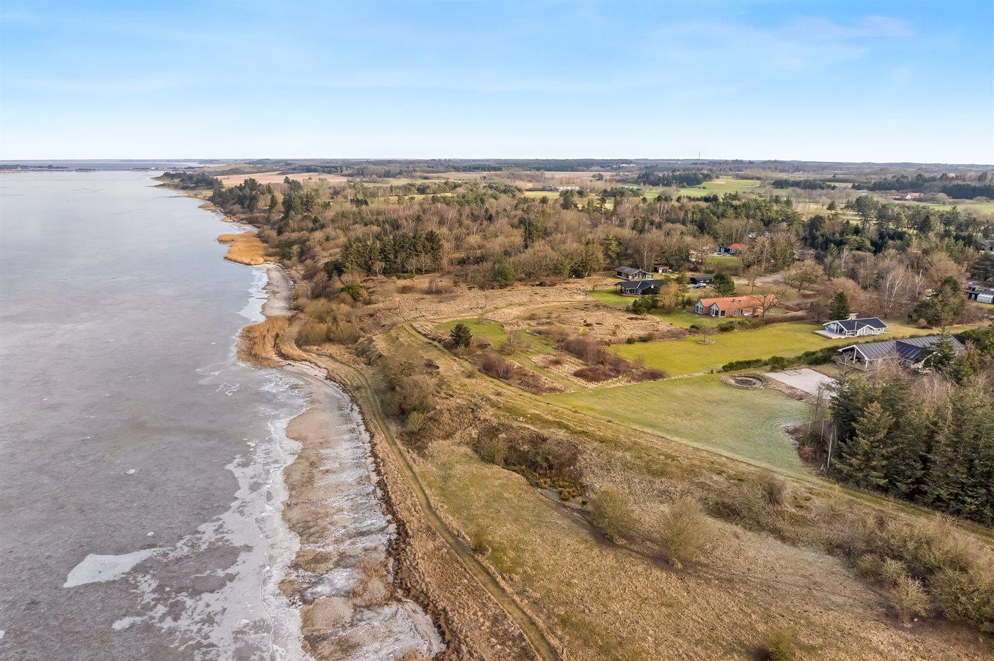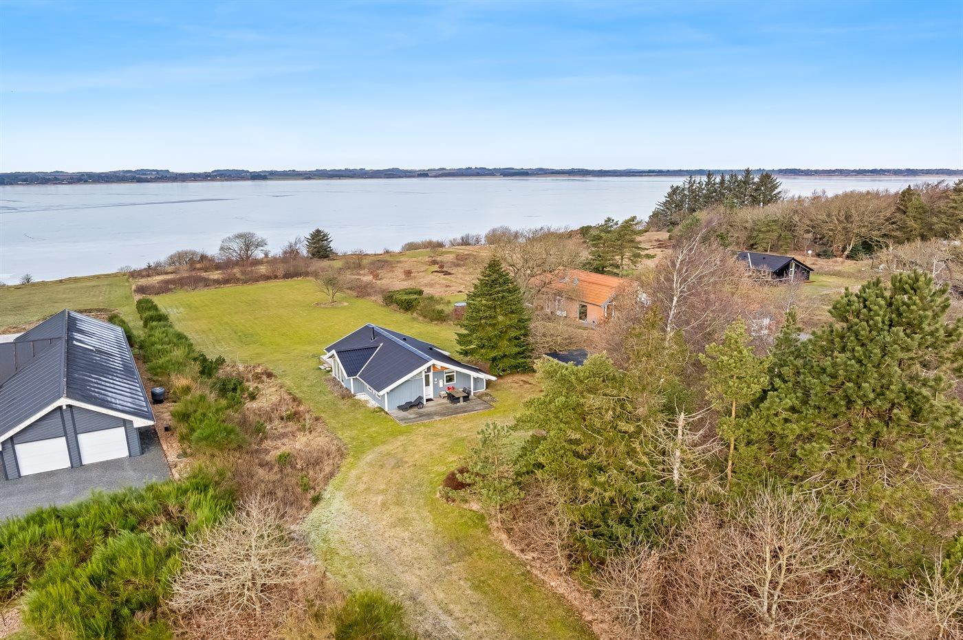 Ferieboligen er beliggende på en 2500 m² stor naturgrund. Der er 250 m til fjorden. Nærmeste forretning er beliggende i en afstand af 5000 m. Der er en golfbane i en afstand af 1500 m. Til ferieboligen hører 20 m² terrasseareal. Desuden er der 20 m² overdækket terrasse. Parkering ved ferieboligen.
