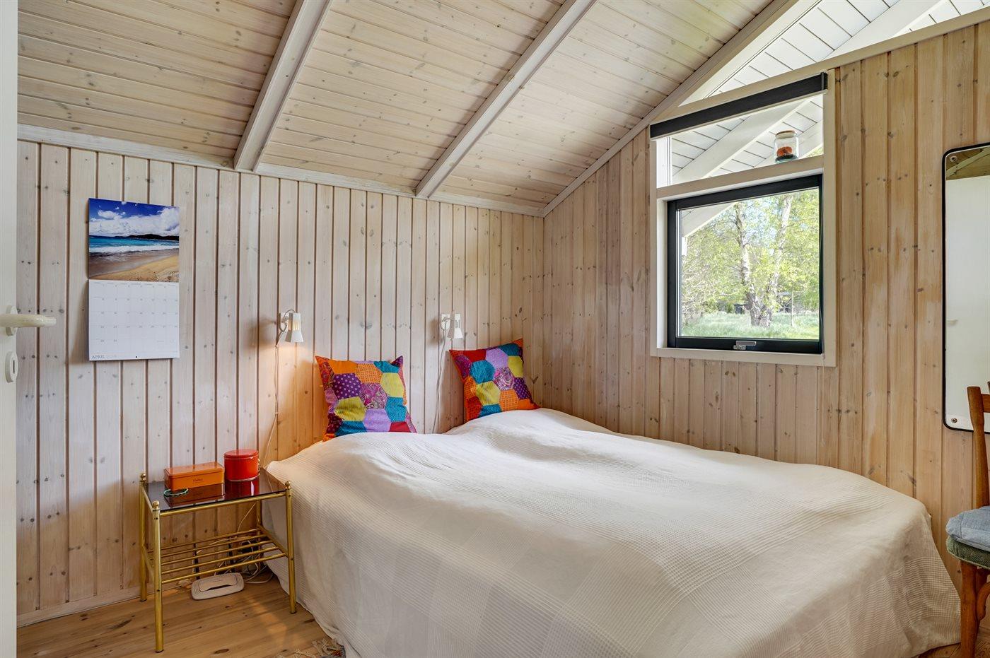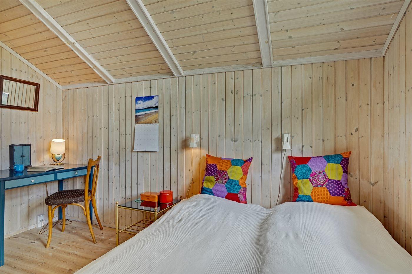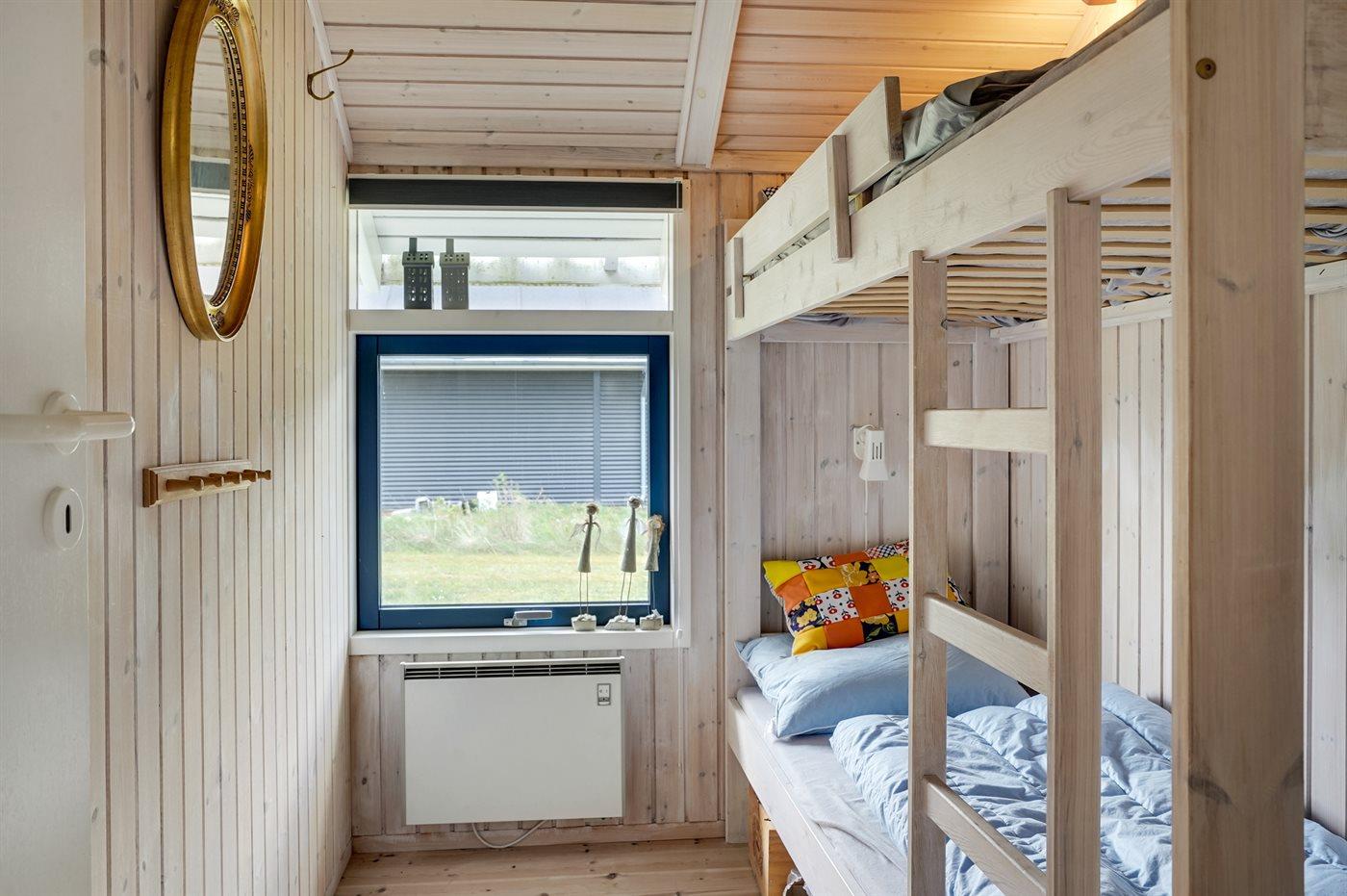 Der er i alt 3 soveværelser. Sovepladserne fordeler sig på: 2 sovepladser i dobbeltseng. 2 sovepladser i enkeltsenge. 2 sovepladser i køjeseng. 2 sovepladser i alkove. Derudover er der 1 stk. barneseng.