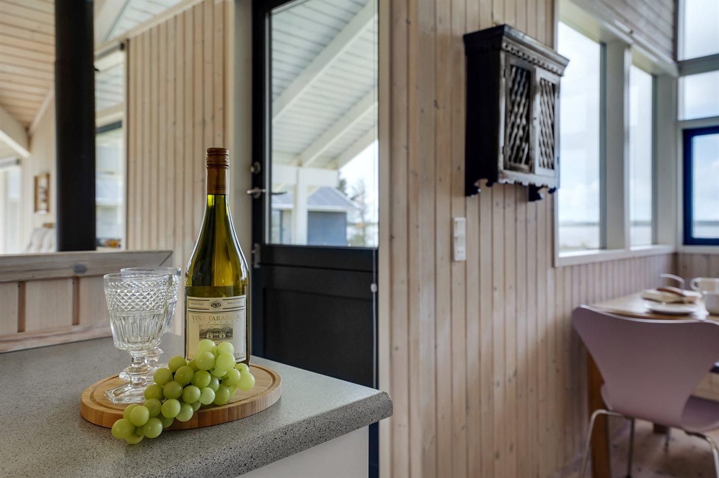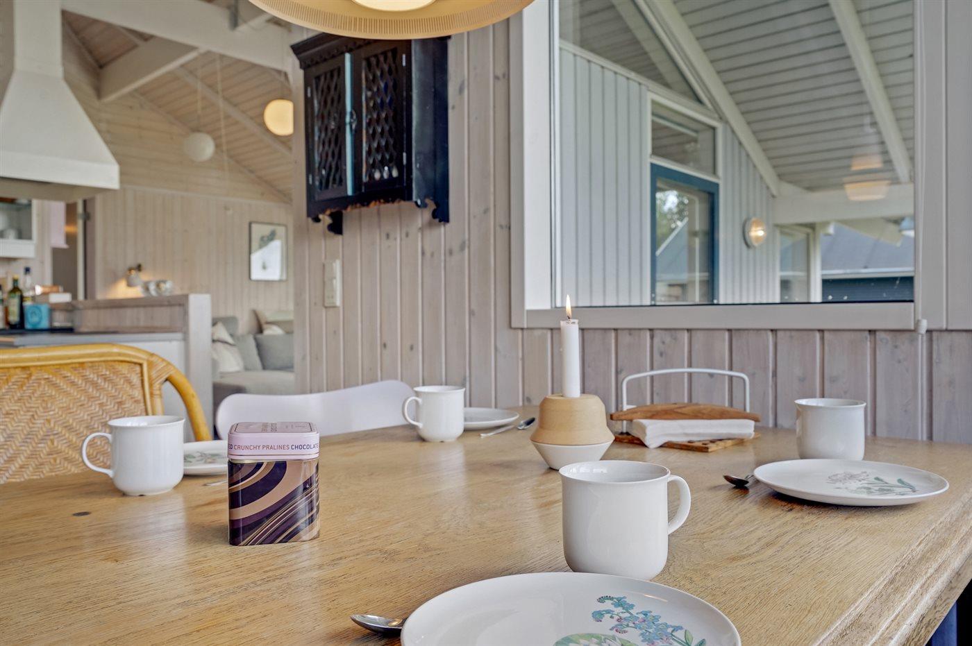 Køkkenet er udstyret med 1 køleskab. Der er 4 induktionskogeplader, varmluftovn, mikrobølgeovn samt opvaskemaskine.