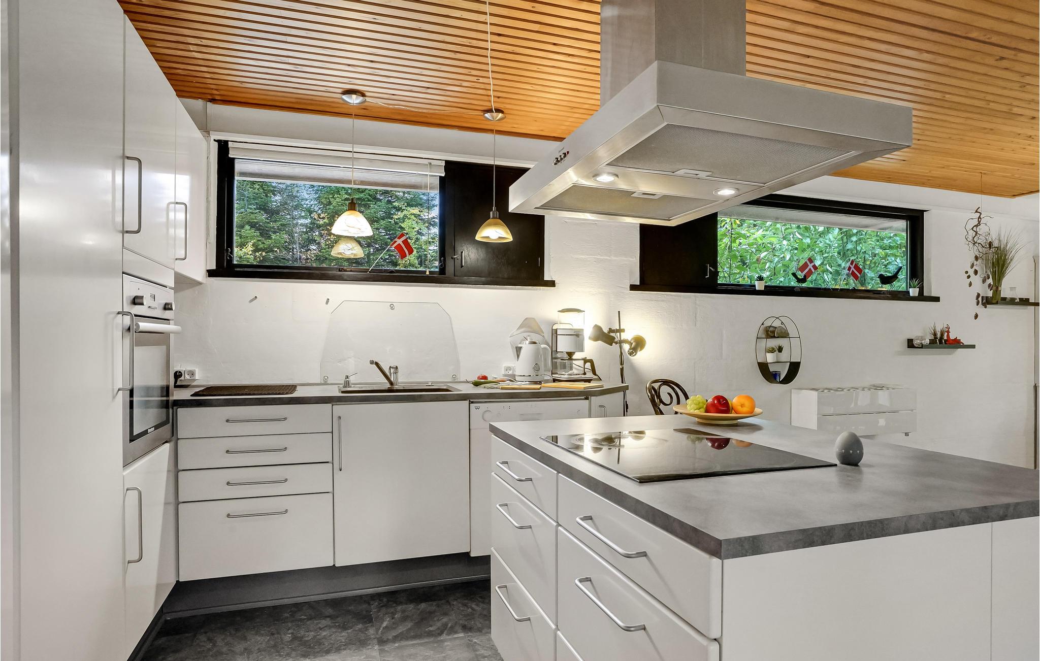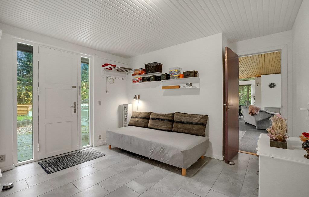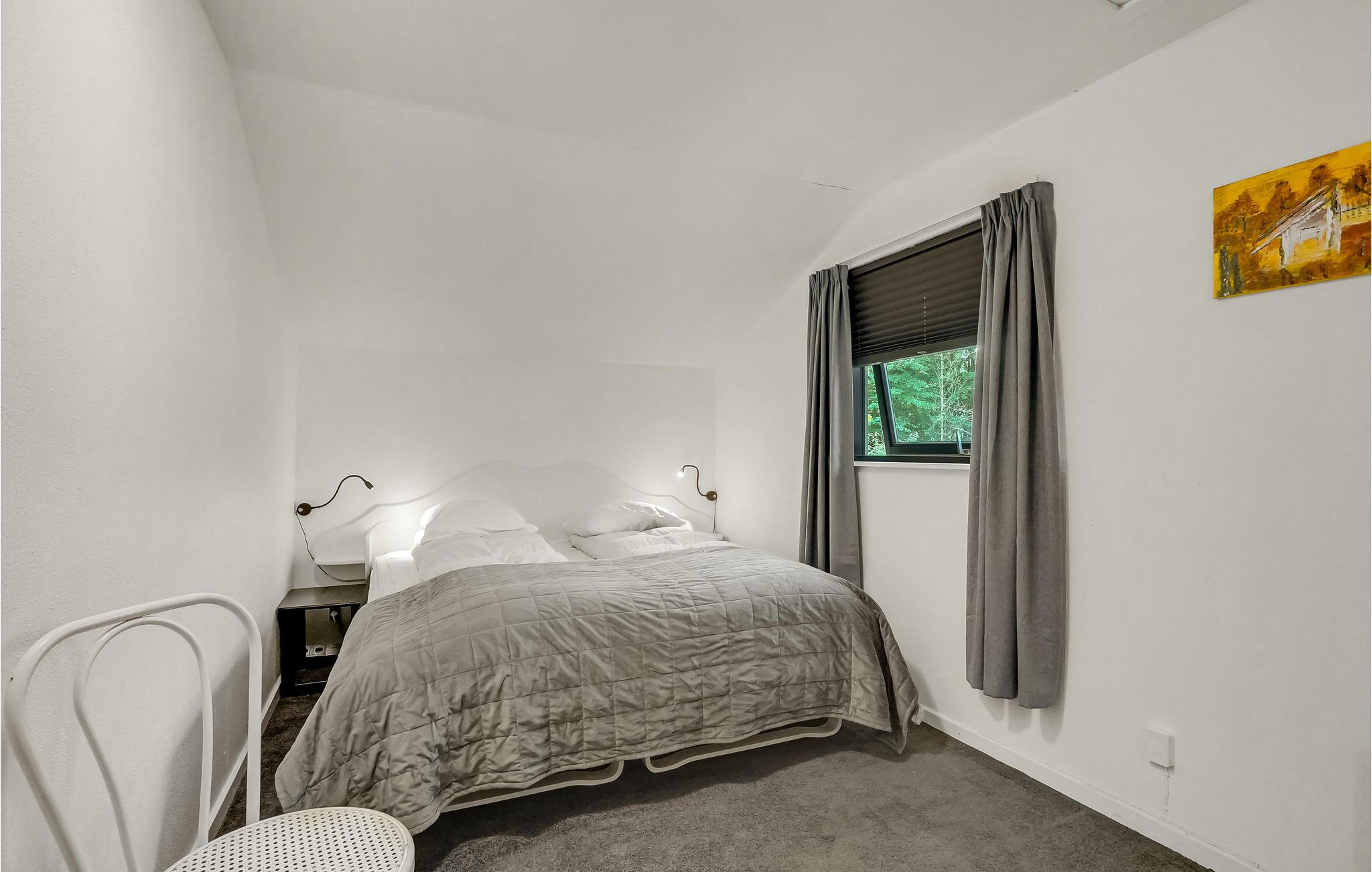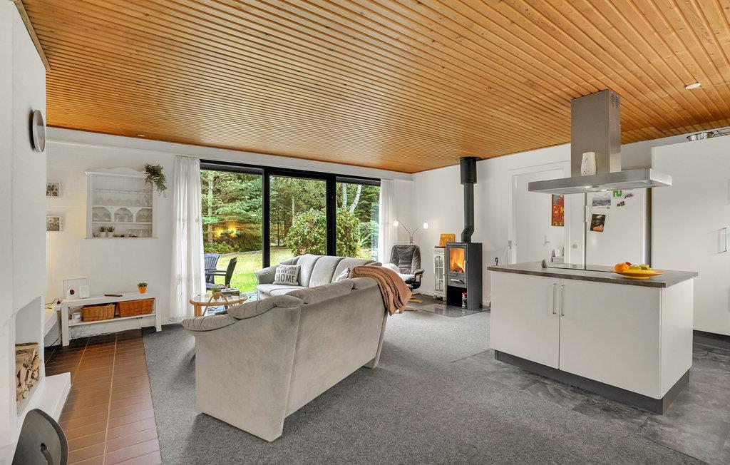 Dette veludstyrede feriehus ligger på en smuk naturgrund omgivet af træer. Det lyse interiør skaber en indbydende atmosfære. Nyd godt af de mange vinduer i stuen, som lukker masser af naturligt lys ind selv på overskyede dage. Nyd jeres feriemåltider med udsigt over det grønne og slap af om aftenen foran brændeovnen. Nyd jeres tid i det fredelige udendørsområde, hvor jeres børn og firbenede venner kan slå sig løs og lege. På en solskinsdag kan I slænge jer i hængekøjen med en god bog, mens jeres børnene spiller bold på græsplænen. Hele grunden er indhegnet, så I kan trygt lade børnene spæne rundt hele dagen, hvis det skulle være.
