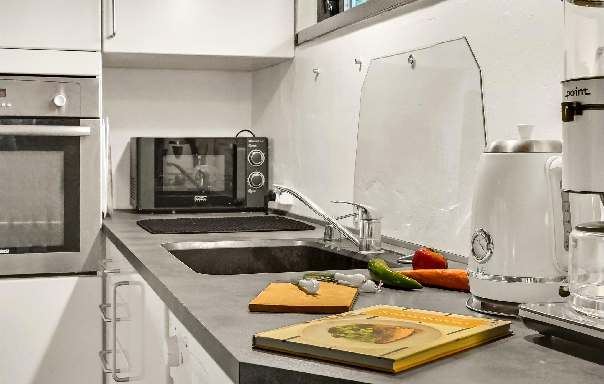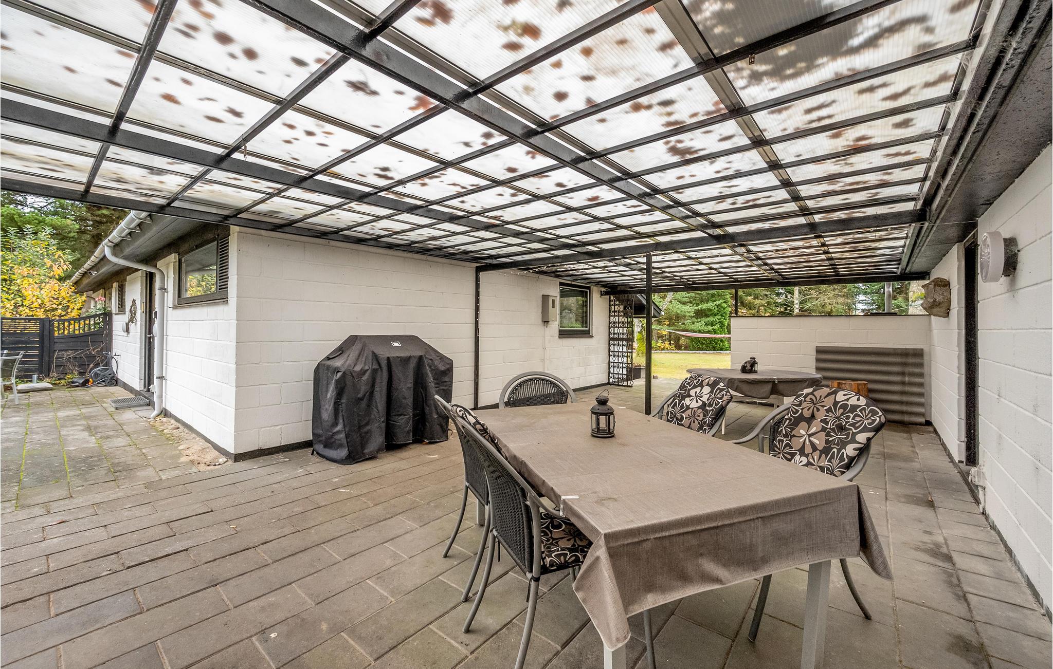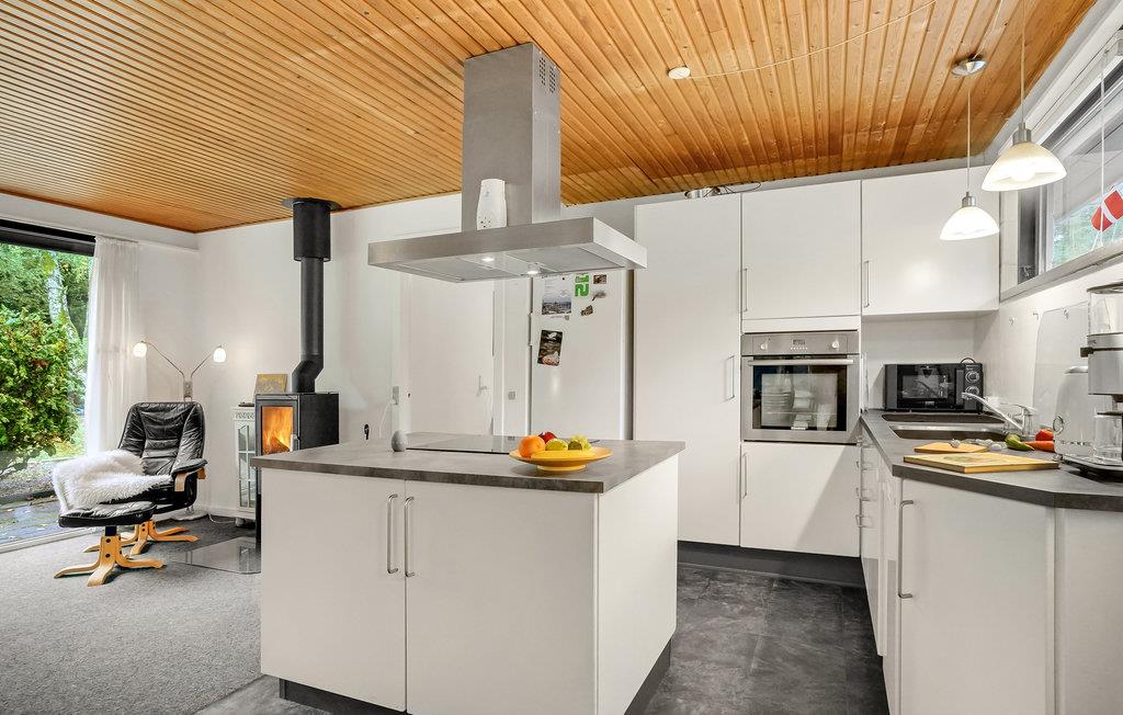 Dette veludstyrede feriehus ligger på en smuk naturgrund omgivet af træer. Det lyse interiør skaber en indbydende atmosfære. Nyd godt af de mange vinduer i stuen, som lukker masser af naturligt lys ind selv på overskyede dage. Nyd jeres feriemåltider med udsigt over det grønne og slap af om aftenen foran brændeovnen. Nyd jeres tid i det fredelige udendørsområde, hvor jeres børn og firbenede venner kan slå sig løs og lege. På en solskinsdag kan I slænge jer i hængekøjen med en god bog, mens jeres børnene spiller bold på græsplænen. Hele grunden er indhegnet, så I kan trygt lade børnene spæne rundt hele dagen, hvis det skulle være.