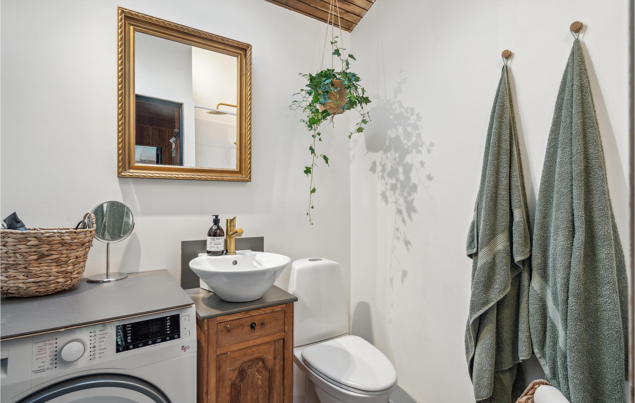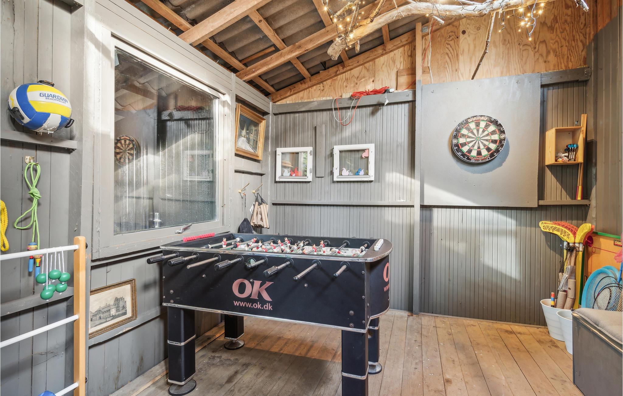 Hvis I er på udkig efter fred og ro i naturskønne omgivelser tæt på vandet, er dette skønne feriehus, smukt omkranset af store træer, det rigtige sted for jer! Nyd de gode aftentimer i den lyse stue, som har en stor vinduesfront og dermed udsigt over fjorden og de frodige omgivelser. Indenfor byder huset på en fremragende blanding af moderne design i naturfarver og en hyggelig familieatmosfære. Naturens nærhed er nærmest magisk, og når I spiser, føles det næsten som at sidde udenfor. Soveværelserne har deres individuelle charme og vil forsøde jeres drømme. I finder også underholdning og sjov i spillelokalet. Gå gennem den skovlignende have, hvor I også kan grille om aftenen, og ud til fjordstranden. Her kan I nyde den afsides beliggenhed og de få naboer og forfriske jer i vandet. Om aftenen kan I kaste fiskesnøren i vandet og bevise jeres evner med en fangst.