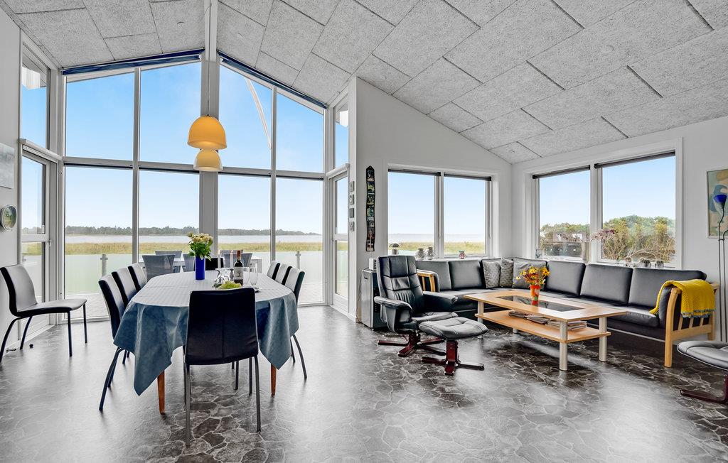 Ved Virksund finder I dette feriehus med en indbydende og personlig indretning, der gør et smagfuldt indtryk. I opholdsrummet kommer I til at tilbringe mange dejlige timer med fælles madlavning og gode snakke rundt om spisebordet. Takket være den store vinduesfacade får I masser af dagslys ind og kan nyde den fantastiske udsigt.