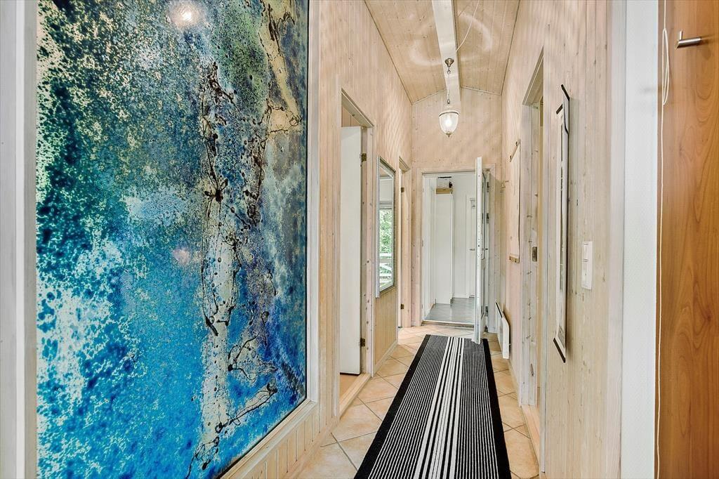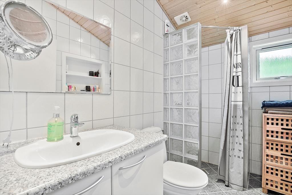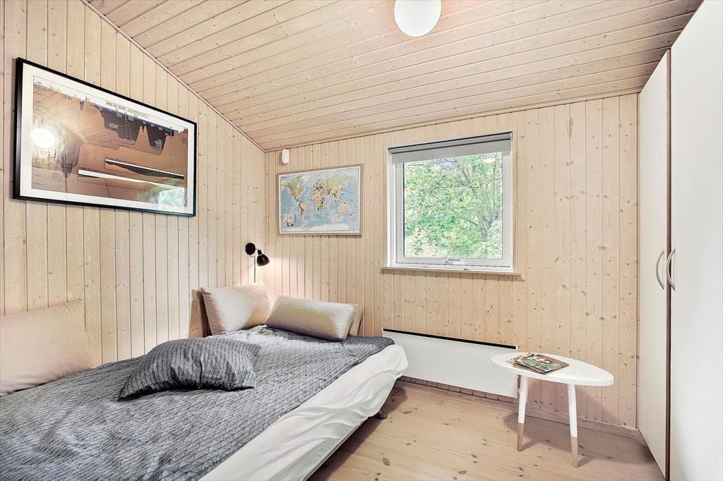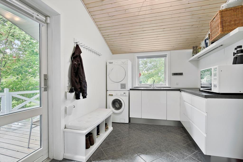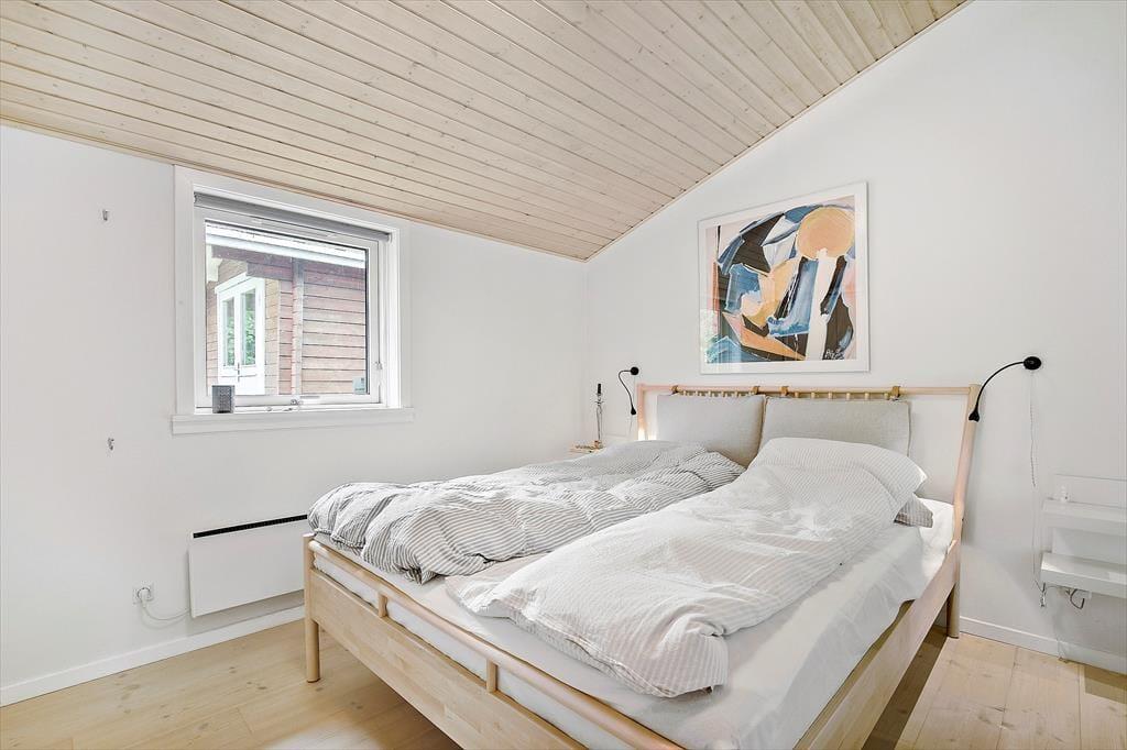 Feriehuset er indrettet med kombineret køkken og opholdsstue. Velindrettet og lyst køkken med keramisk komfur, mikroovn, opvaskemaskine og køleskab med fryser. Lys og moderne indrettet opholdsstue med loft til kip, store vinduespartier og ovenlysvinduer, og udgang til en delvis overdækket terrasse, hyggelig spisekrog, sofaer og lænestole, varmepumpe og brændeovn, Smart_TV hvor der er adgang til danske DR kanaler, og streamingtjenester (kræver eget abonnement) Badeværelse med klinkegulv, gulvvarme og bruseniche. Bryggers med vaskemaskine, tørretumbler og mikroovn. Tre soveværelser, et med dobbeltseng, og to med dobbelte sovesofaer. Opvarmning af huset foregår via varmepumpe, brændeovn og elvarme