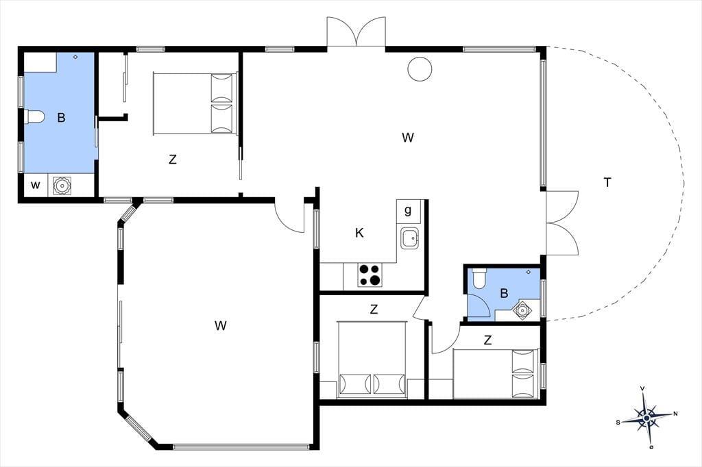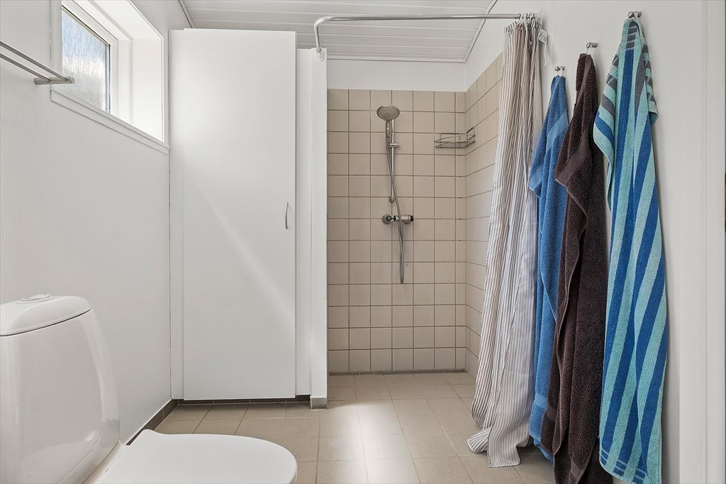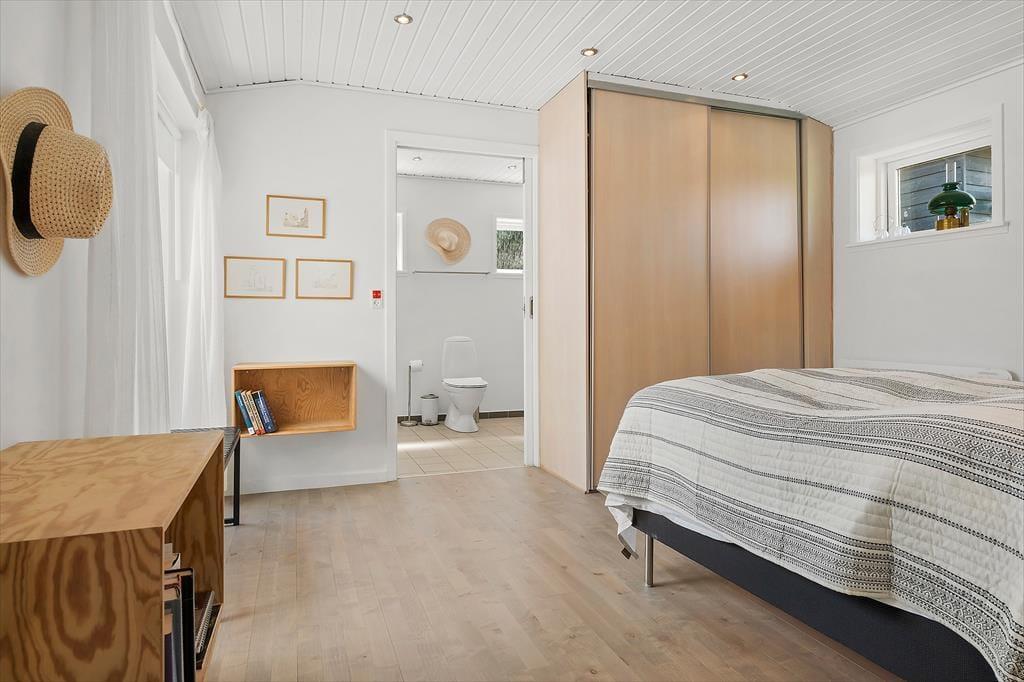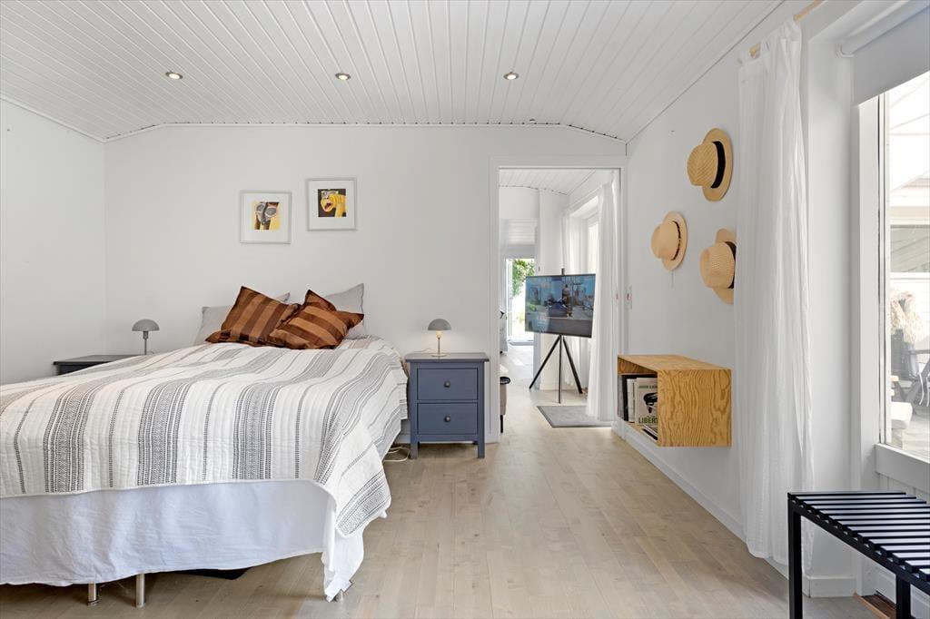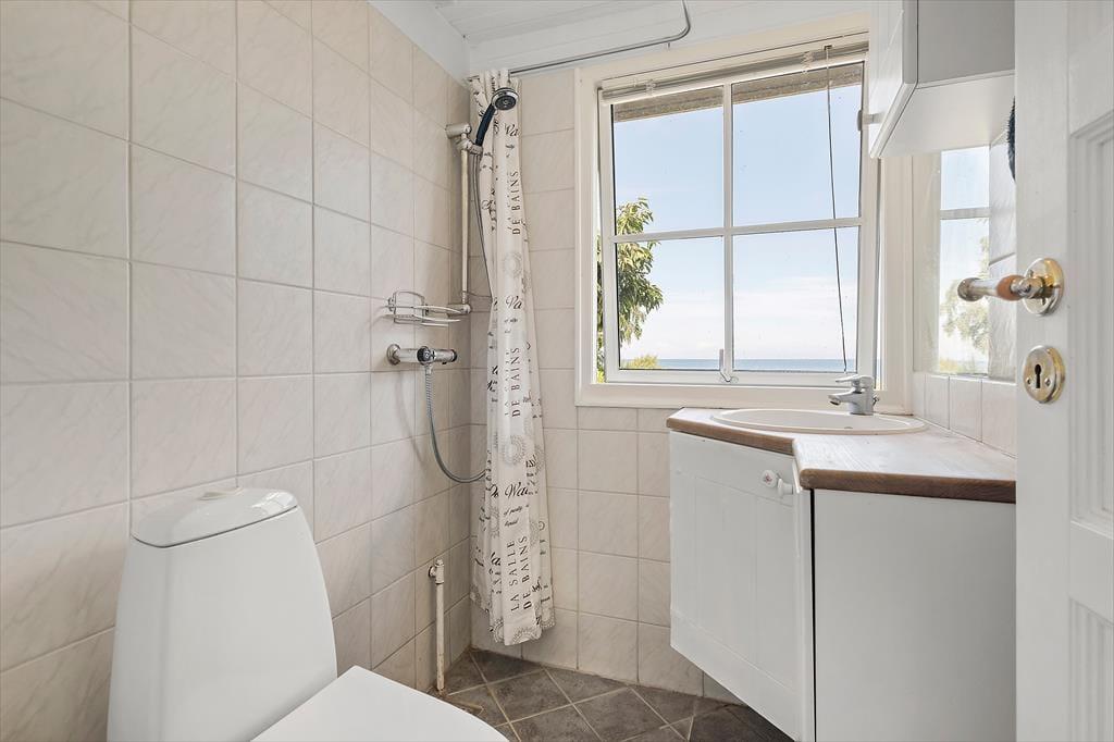 Feriehuset som er dejligt lyst byder på et fantastisk lysindfald fra det store vinduesparti i stuen. Det er indrettet med kombineret køkken og opholdsstue. Nyt lækkert Kvik køkken fra 2024 med indbygget ovn, kogeplader, mikroovn, opvaskemaskine, og køleskab med fryser. Lys og velindrettet opholdsstue med stort vinduesparti, hvilket giver både masser af lys i huset, samt ikke mindst en helt fantastisk havudsigt, udgang til terrasse, god spiseplads, sofa og lænestole, Smart-TV med DR programmer og More TV pakke via app. To Badeværelser med brusenicher, hvoraf det ene har en vaskemaskine. Tre soveværelser, to med dobbeltsenge og et med en halvanden mands sovesofa (120x200). Huset opvarmes med varmepumpe, elvarme samt pille brændeovn.