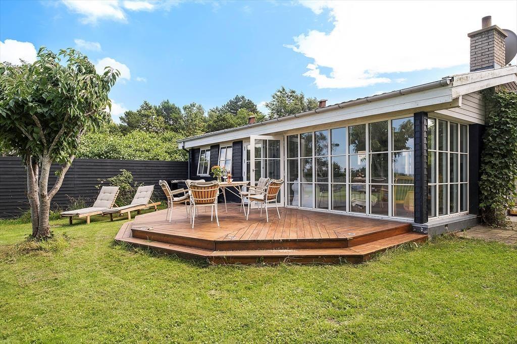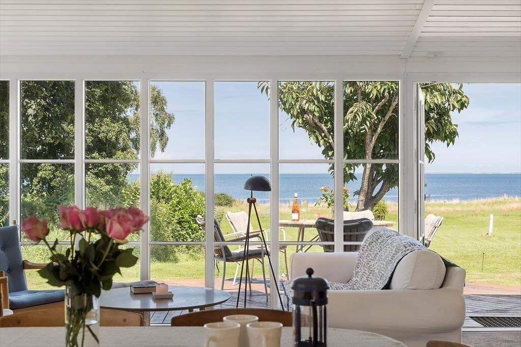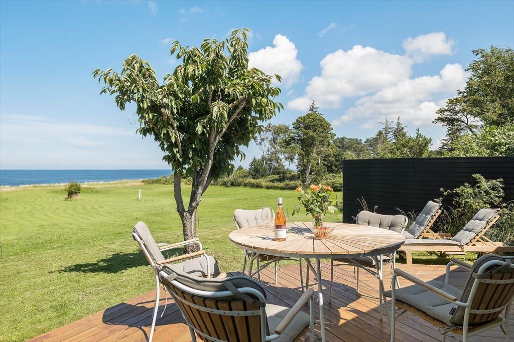 Huset har en grund som går direkte ned til stranden. Træk stikket ud og nyd de solrige dage på terrassen, og den skønneste havudsigt. Om aftenen kan der tændes op i grillen og nyd freden sænke sig mens solen går ned i horisonten. Desuden er der en 27 m2 rigtig hyggelig udestue. Ved feriehuset er der havemøbler, parasol og grill. Grunden foran huset er privat. Adgangen til vandet skal foregå fra sti på vejen
