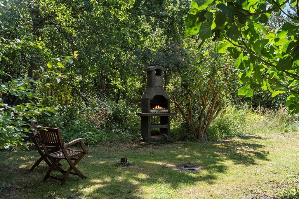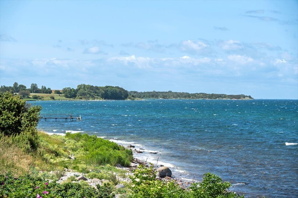 Nyd livet udenfor: Nyd morgenkaffen på den dejlige terrasse med fint havkig. Gå en tur i den skønne have, hvor du kan grille og tænde op i den hyggelige havepejs. Læs en god bog på terrassen fra udvalget i stuens bogreol og lad roen sænke sig. Der er desuden kort gå afstand til stranden via en sti, og her kan du tage en frisk dukkert fra badebroen.