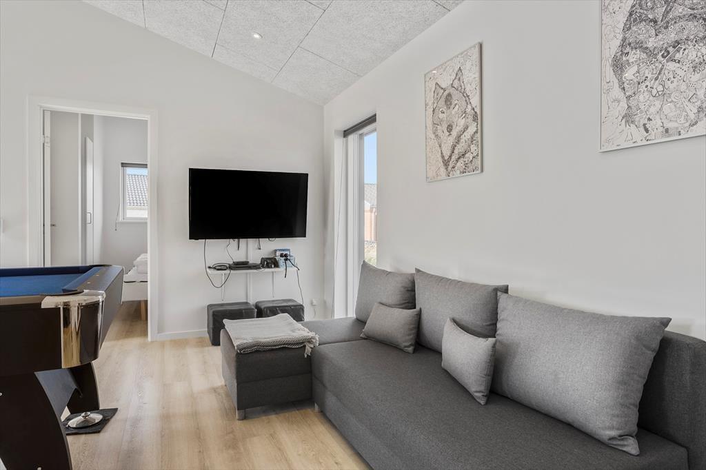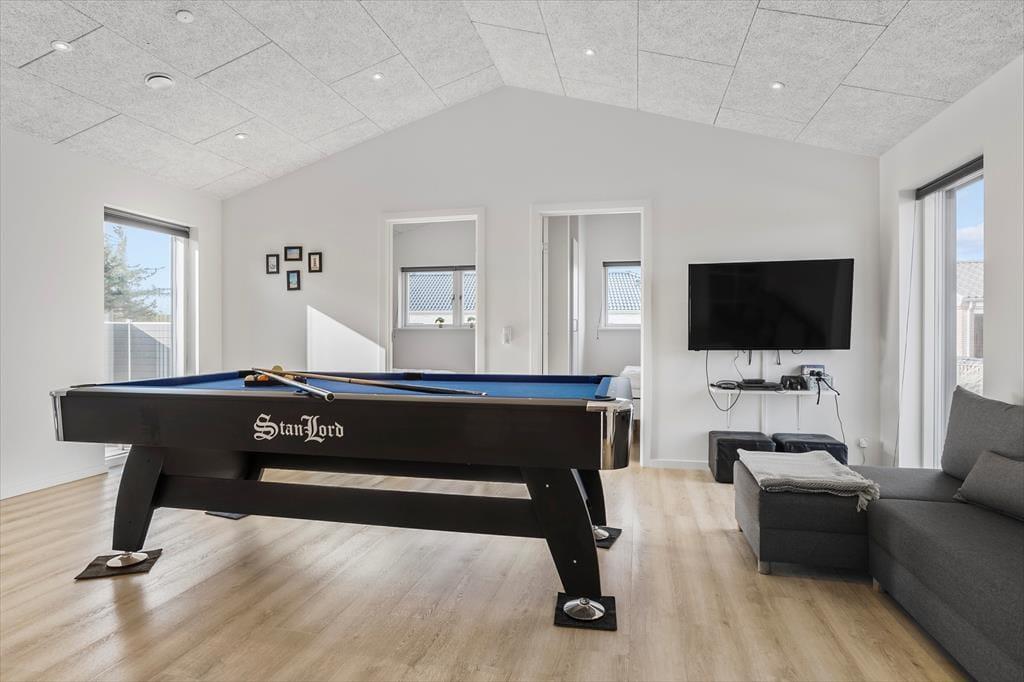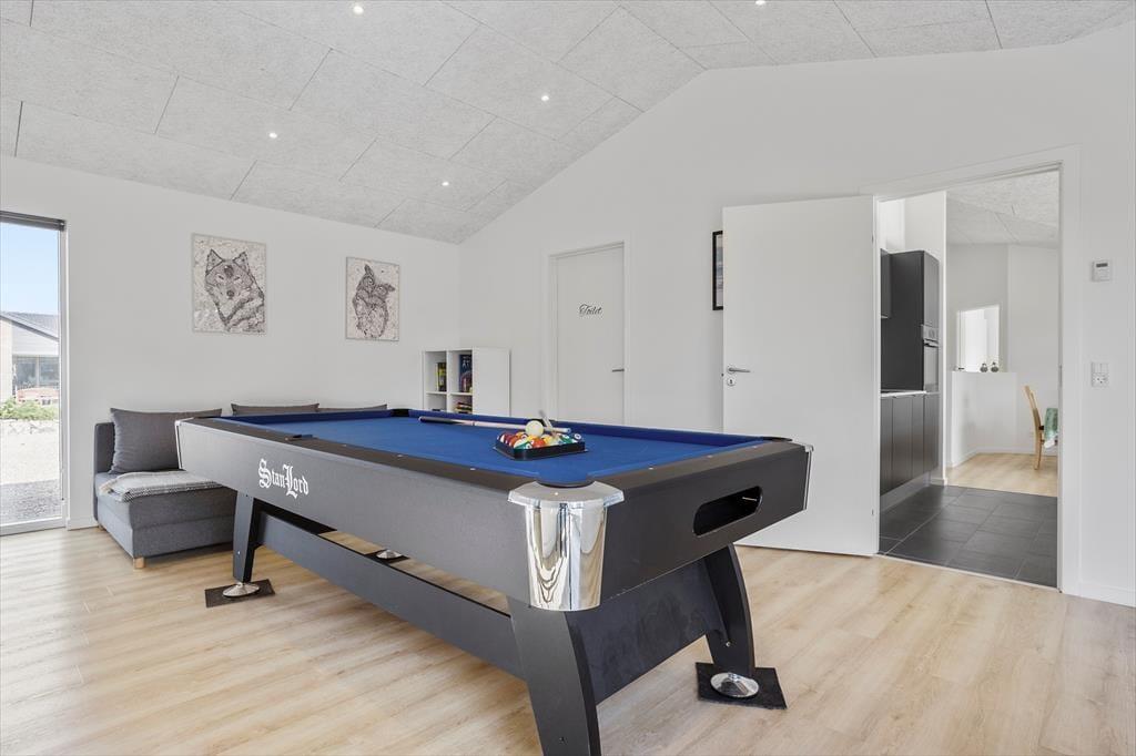 Som du træder indenfor i dette luksuriøse sommerhus, bliver du straks mødt af en følelse af kvalitet og komfort. Huset er smagfuldt indrettet med moderne kvalitetsmøbler, der gør det nemt at føle sig hjemme, uanset om du er her med familien eller vennerne. Med sine mange kvadratmeter og velindrettede rum er her masser af plads til samvær. Den store stue er husets hjerte – her kan du synke ned i en blød sofa og nyde en hyggelig aften. For de konkurrencelystne venter der timevis af sjov i aktivitetsrummet, hvor et poolbord står klar til familie- eller venskabelige dyster. Sommerhuset er delt op i to afdelinger, hvilket gør det muligt for både store familier at have hver deres afdeling, eller for par at lukke halvdelen af huset af og nyde en mere intim atmosfære.