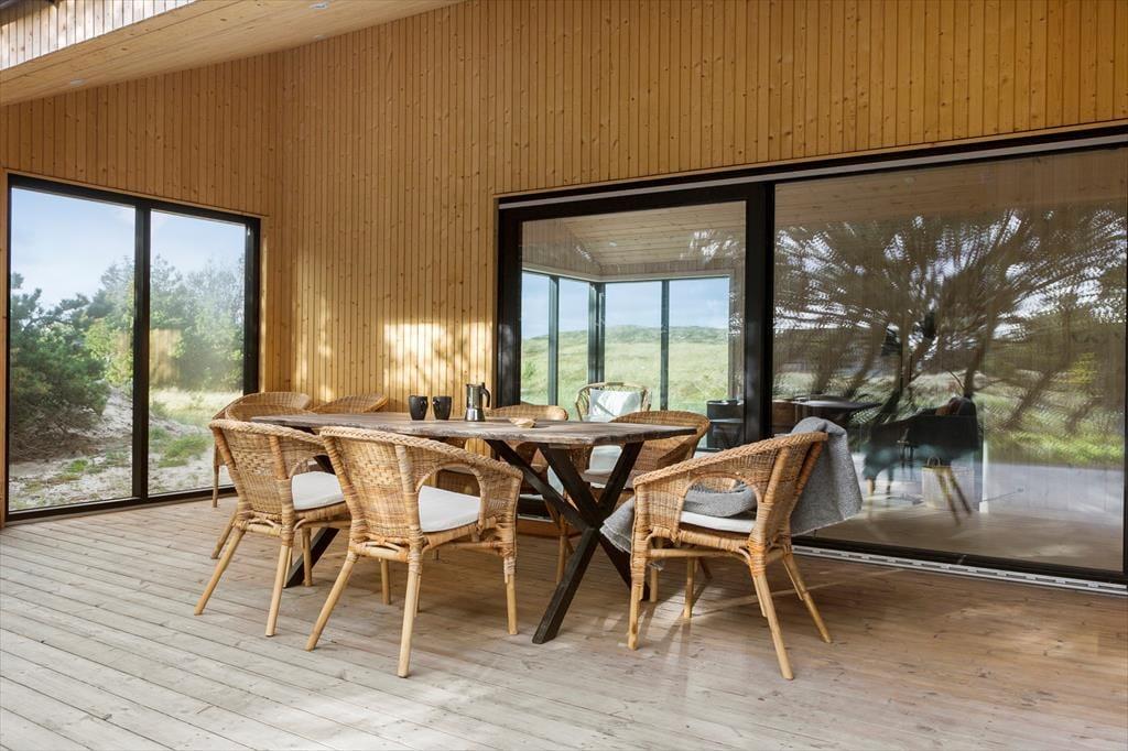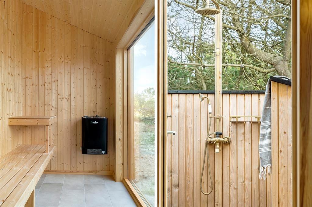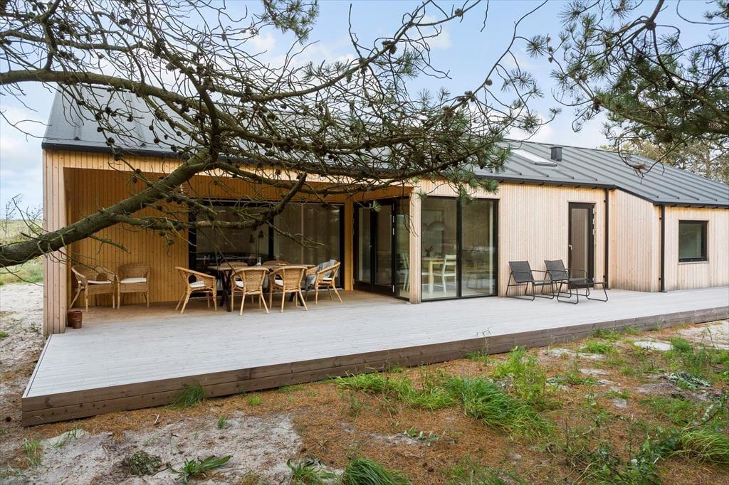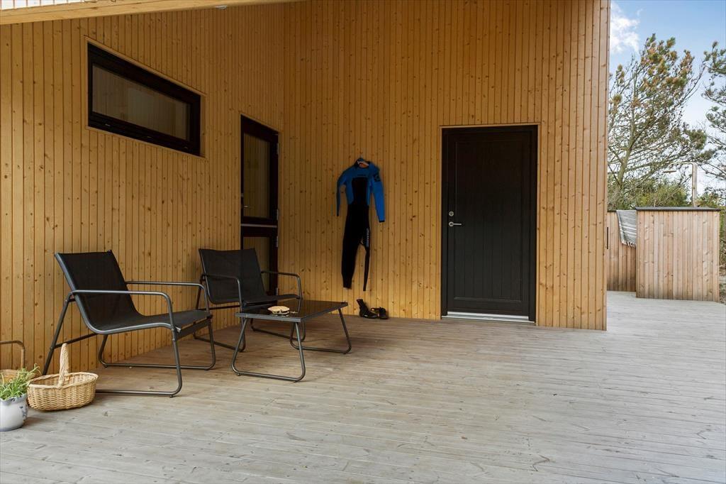 Sommerhuset ligger omgivet af det karakteristiske klitlandskab, som du kan nyde fra den lækre terrasse. Her er plads til at trække frisk luft og mærke solen på huden, mens du nyder synet af naturen. Terrassen er udstyret med havemøbler og en udendørsbruser, der gør det ekstra nemt at skylle sandet af efter en tur ved stranden. Uanset om du starter dagen med morgenkaffe i solen eller afslutter med en stjerneklar aften, er omgivelserne skabt til afslapning og nydelse.