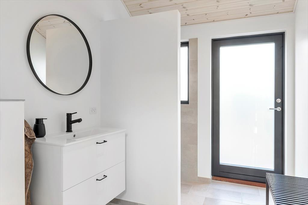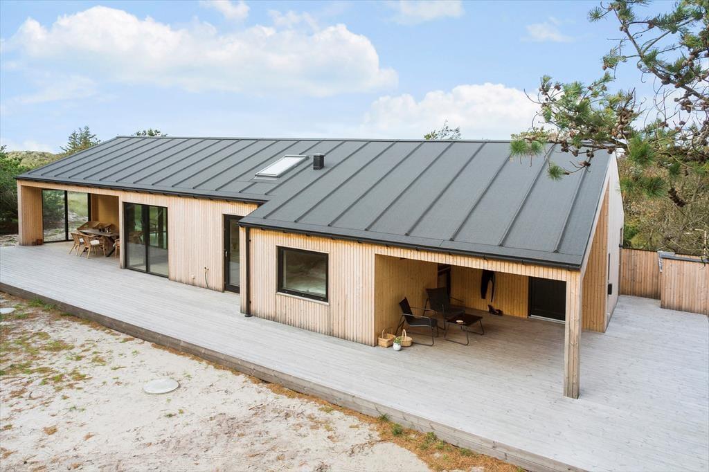Når du træder ind i dette nybyggede træhus, bliver du mødt af en lys og moderne indretning, der byder på et varmt og indbydende miljø året rundt. Den energibesparende varmepumpe sikrer et behageligt indeklima, mens saunaen indbyder til ultimativ afslapning – perfekt efter en dag med friske gåture i klitterne. Husets rummelige planløsning gør det nemt at samles med familien, men også at finde ro i private kroge.