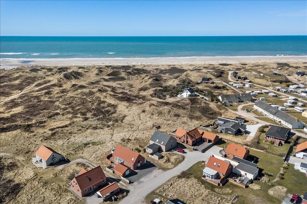 Når du træder udenfor, åbner der sig en verden af muligheder for at nyde naturen helt tæt på. Huset ligger midt i et betagende klitlandskab, som du kan nyde udsigten til fra terrassen – en oplagt ramme for en stille morgen med dampende kaffe i koppen eller en hyggelig grillaften med solnedgangen som baggrund. Den store grund giver rig mulighed for leg og aktiviteter i det fri, mens terrassen er det perfekte sted til at samle familien og nyde de lange, lyse sommeraftener. Her kan du finde ro, mens vinden hvisker gennem klitterne, og fuglesangen skaber en idyllisk baggrund.