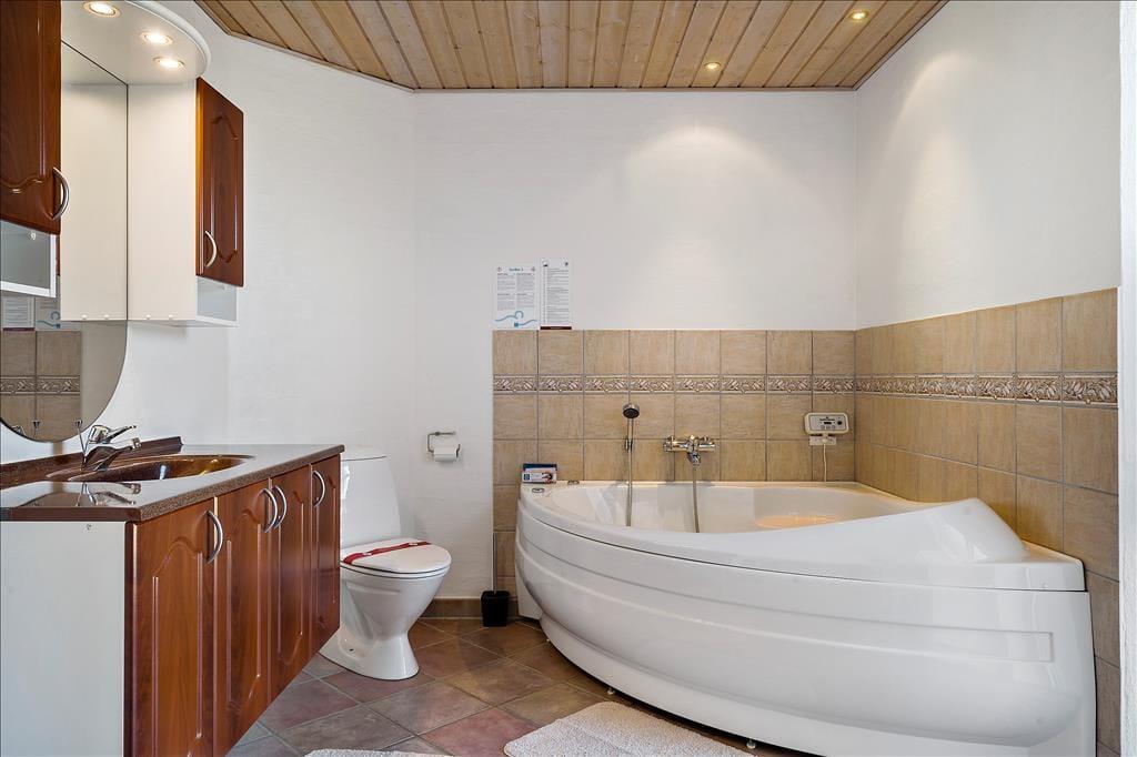 Træd indenfor i dette store og lyse sommerhus, hvor hyggen og komforten går hånd i hånd. Huset byder på et rummeligt opholdsrum med en knitrende brændeovn, der skaber en varm og indbydende stemning – perfekt til samvær med familie og venner på kølige aftener. Efter en dag fyldt med oplevelser kan du forkæle dig selv med en afslappende stund i spabadet eller nyde varmen i saunaen, der er ideelle til at løsne op for kroppen og skabe ren afslapning. Huset er udstyret med moderne fjernvarme, så du altid er sikret en behagelig temperatur, uanset årstid. Her er rammerne sat for en ferie fuld af hygge og afslapning.