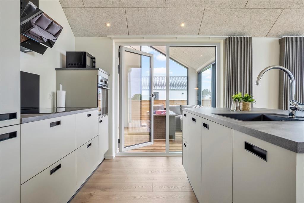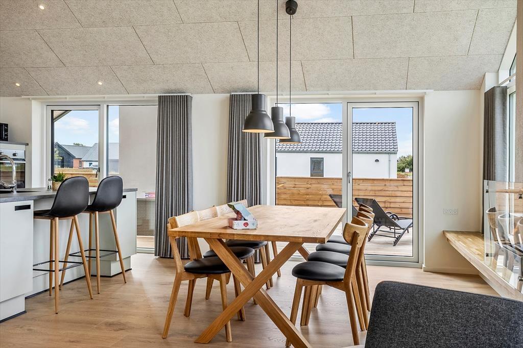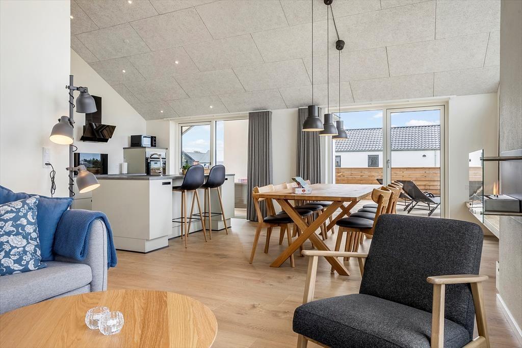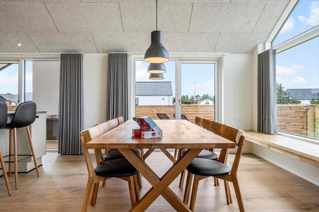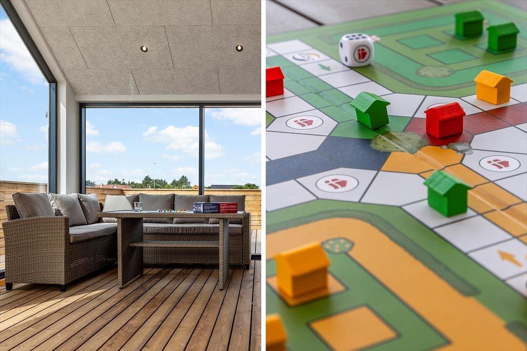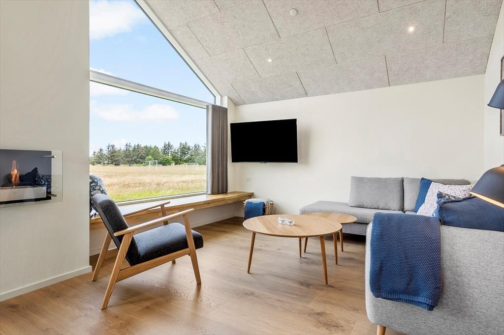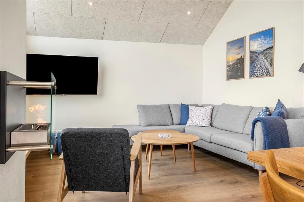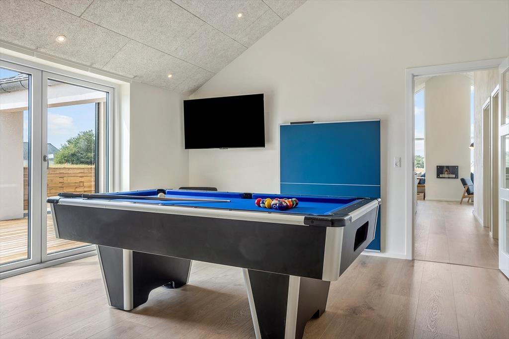 Træd ind i dette stilfuldt indrettede sommerhus, hvor lyse og rummelige omgivelser byder dig velkommen. Store vinduer fylder stuen med naturligt lys og skaber en varm og indbydende atmosfære. I aktivitetsrummet kan du nyde sjove spil som bordtennis og pool, hvilket gør det til et ideelt sted for både afslapning og underholdning. Den nøje udvalgte indretning og komfortable faciliteter gør dette sommerhus perfekt til en uforglemmelig ferie.