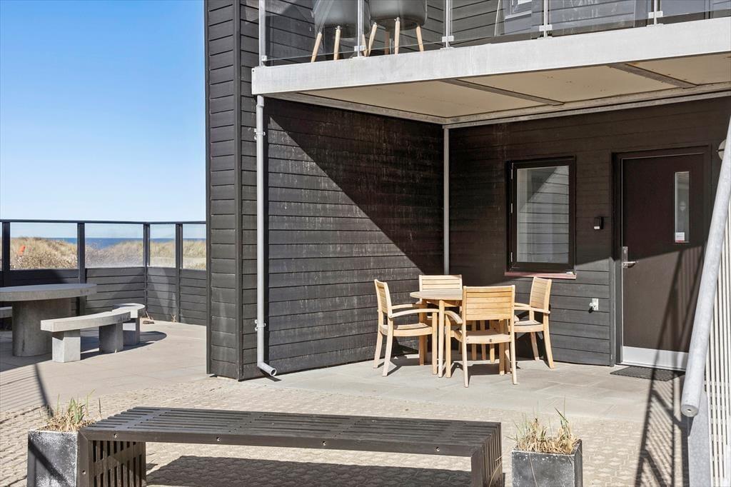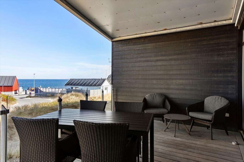 Udenfor venter en dejlig, afskærmet balkon, som giver dig mulighed for at følge med i livet omkring molen og Havbadet. Her kan du trække dig tilbage og få et pusterum fra hverdagen, mens du ser ud over havet. Om aftenen er balkonen den perfekte ramme for at nyde en god middag eller et glas vin, mens solen langsomt går ned og lyser op i smukke farver. Med denne placering er det nemt at tilbringe utallige timer udendørs, hvor naturen og havets brusen er din nærmeste nabo.