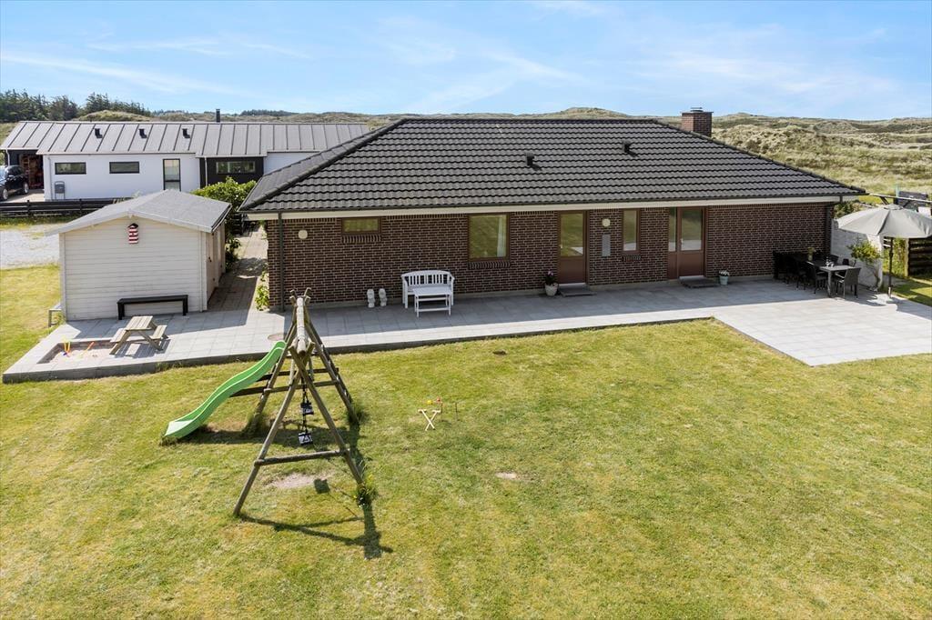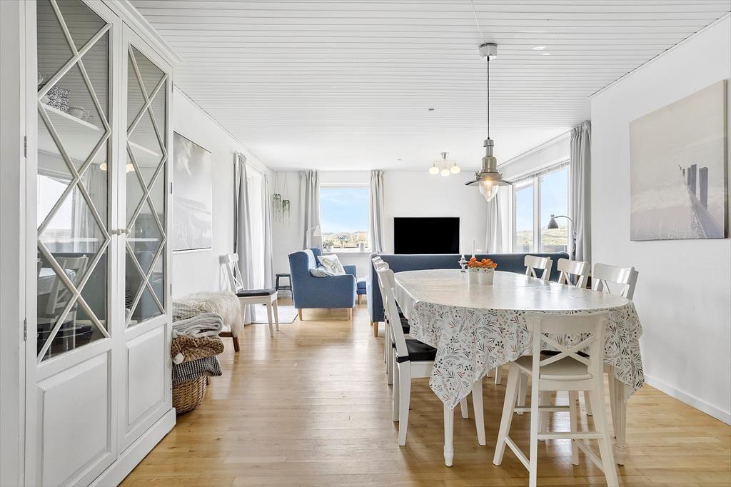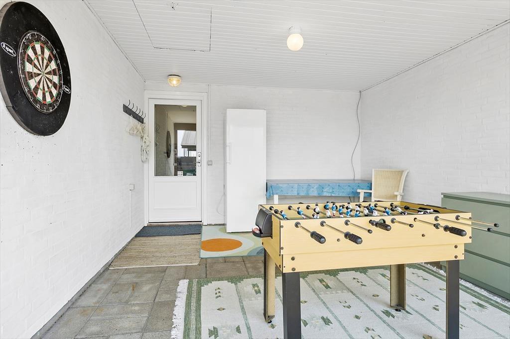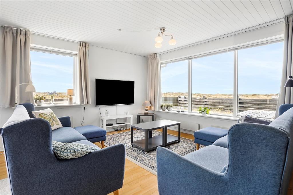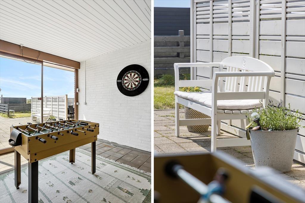 Når du træder indenfor i dette velholdte sommerhus, bliver du straks mødt af en lys og indbydende atmosfære. Sommerhusets store opholdsstue byder ikke kun på komfortable møbler, men også på udsigt over Vesterhavet. Med plads til 10 personer er her rig mulighed for at samle hele familien eller tage afsted med vennerne. De moderne faciliteter, såsom vaskemaskine, opvaskemaskine, tørretumbler og hurtigt internet, sørger for, at din ferie bliver så komfortabel som mulig. Og skulle vejret vise sig fra sin rå side, kan I trække jer tilbage i det lille aktivitetsrum, hvor der er plads til at udfordre hinanden i bordfodbold eller dart.