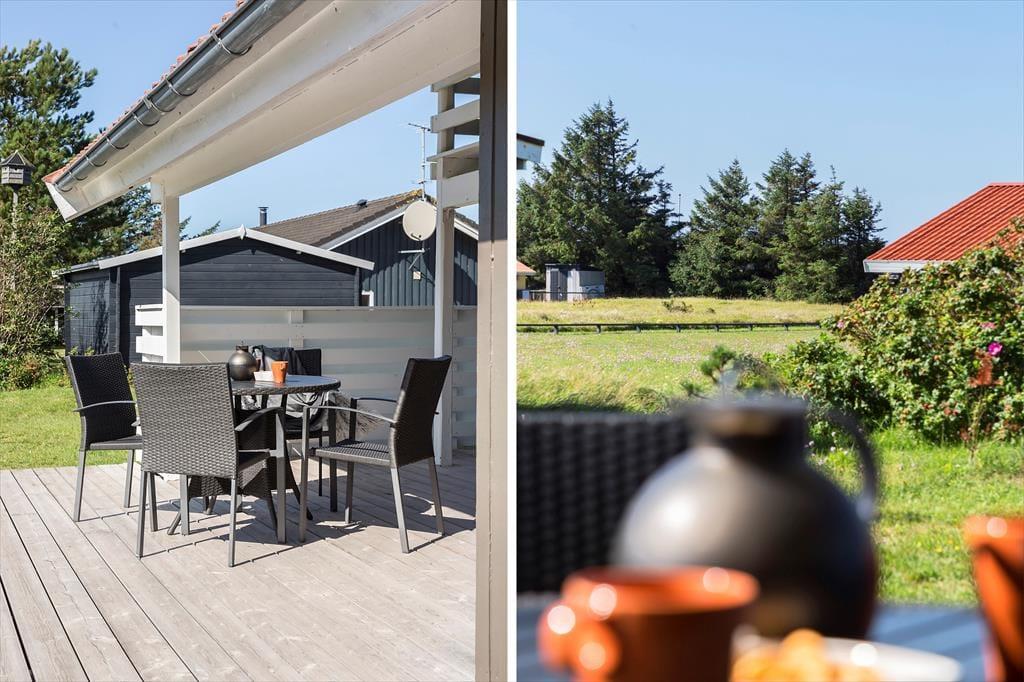 Sommerhusets udendørsarealer er lige så indbydende som dets indre. Den store terrasse indbyder til lange, afslappede dage under åben himmel, hvor morgenkaffen kan nydes til fuglenes kvidren, og aftenerne kan bruges på hyggelige grillmiddage. Med masser af plads omkring huset er der rig mulighed for, at børn og husdyr kan lege frit, mens de voksne slapper af med en bog eller et glas vin. Her finder du den perfekte kombination af privatliv og åbne, indbydende omgivelser – alt sammen med naturen som baggrundstæppe.