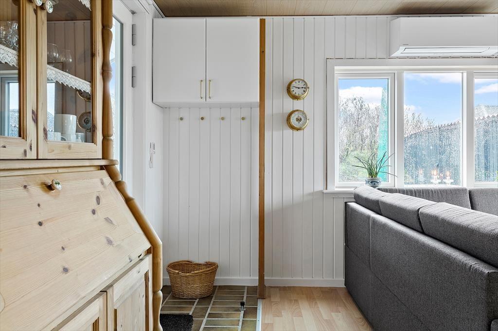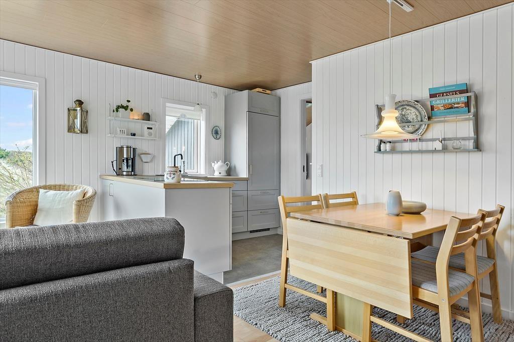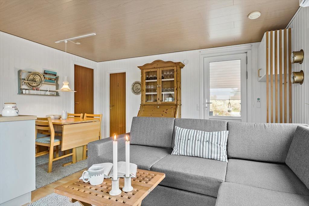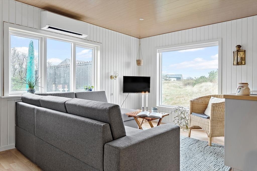 Sommerhuset er indrettet med fokus på hygge og funktionalitet, så du straks føler dig hjemme. Stuen er lys og indbydende og danner rammen om familiens samvær, hvad enten det er over en fælles middag, en brætspilsaften eller en stille stund med en bog. Den energivenlige varmepumpe sørger for et behageligt indeklima året rundt og giver dig den rette komfort uanset årstid. Indretningen er enkel og afslappet, men fuld af feriestemning – det perfekte udgangspunkt for nogle skønne dage tæt på Vesterhavet.