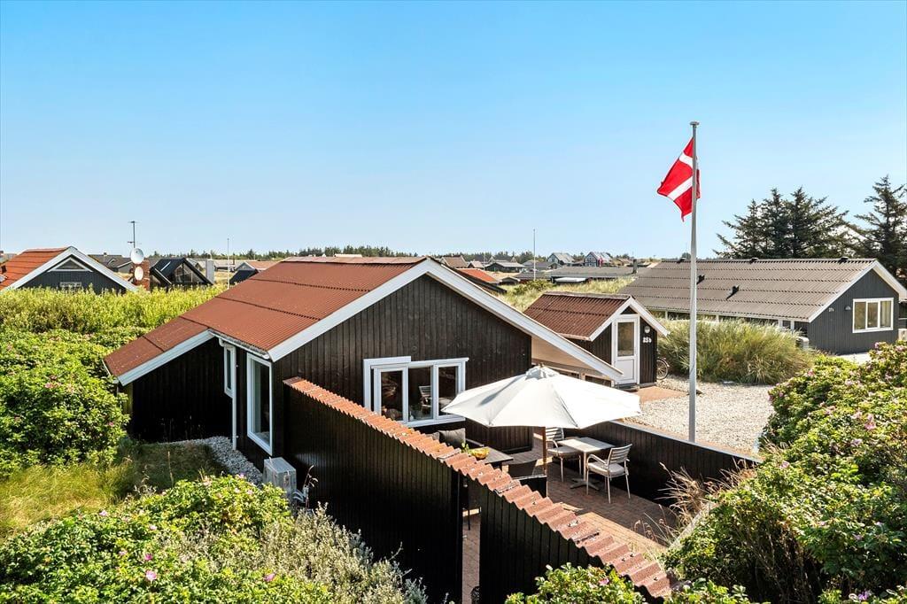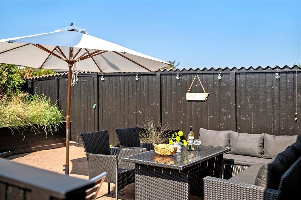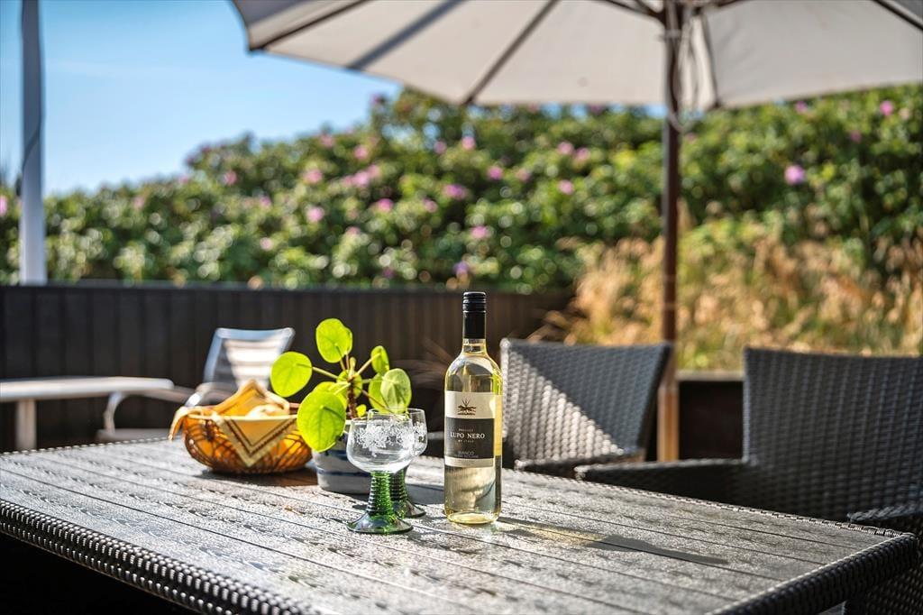 Udenfor venter en dejlig naturgrund, hvor du kan nyde ferien i rolige omgivelser. Den hyggelige terrasse indbyder til afslappede stunder i solen, lange måltider under åben himmel eller en stille kop kaffe i morgensolen, mens fuglene kvidrer omkring dig. Her kan børnene lege frit, mens de voksne læner sig tilbage og mærker roen brede sig. Naturgrunden skaber en følelse af privatliv, og du er samtidig omgivet af klitlandskabet, der er så karakteristisk for Vorupør og hele Nationalpark Thy.