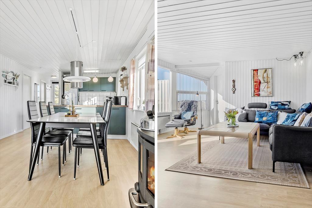 Træd indenfor i dette lyse og indbydende sommerhus, som i foråret 2023 blev renoveret for at sikre dig en ferieoplevelse i topklasse. Den rummelige stue byder på store vinduespartier, der lukker masser af dagslys ind og skaber en hyggelig atmosfære. Efter en dag med oplevelser kan du tænde op i brændeovnen, lade varmen brede sig og nyde samværet med dem, du holder af. Saunaen inviterer til ren afslapning, hvor du kan lade musklerne løsne op og finde roen. Med husets moderne indretning og varme stemning er du garanteret uforglemmelige stunder året rundt.