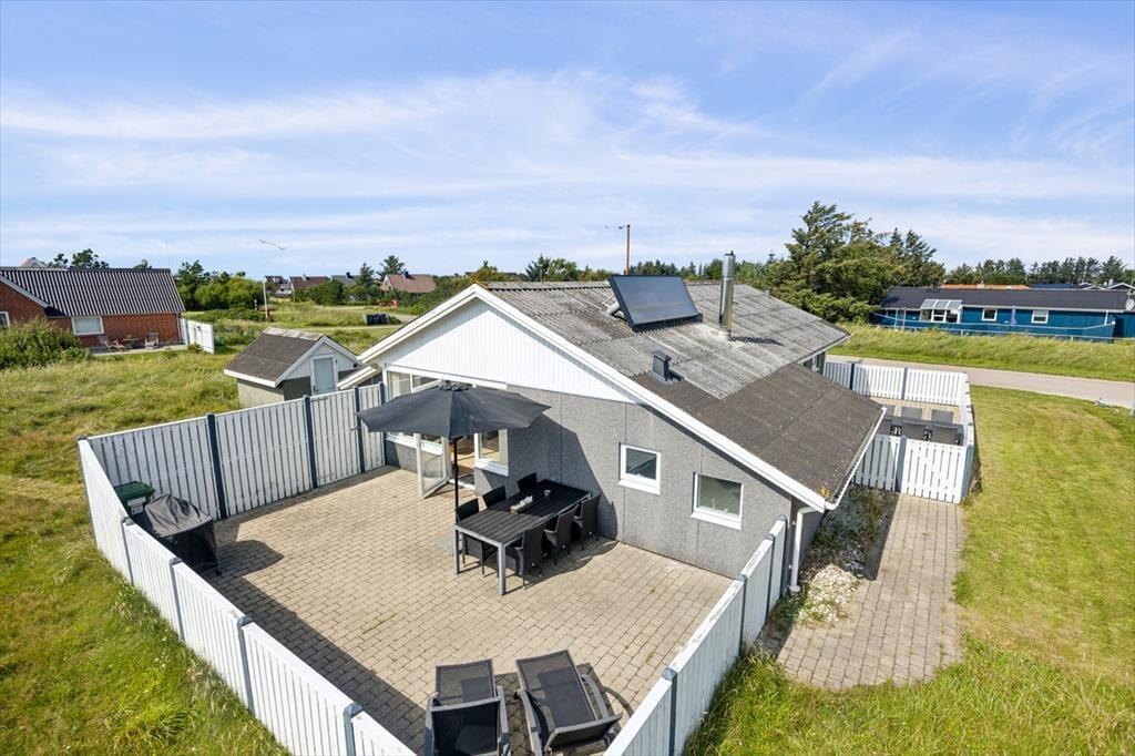 Udendørs venter en dejlig grund, som byder på mulighed for både aktivitet og afslapning. Den solrige terrasse er det ideelle sted til at nyde morgenkaffen, grille på lune aftener eller blot lade dagens timer flyde langsomt forbi. På plænen kan børnene lege frit, mens hunden snuser rundt i det grønne. Her er der plads til at skabe minder og trække vejret dybt i Vorupørs friske havluft.