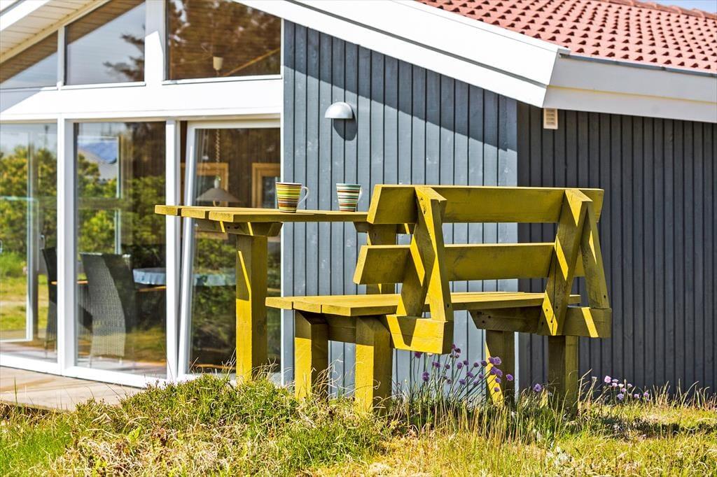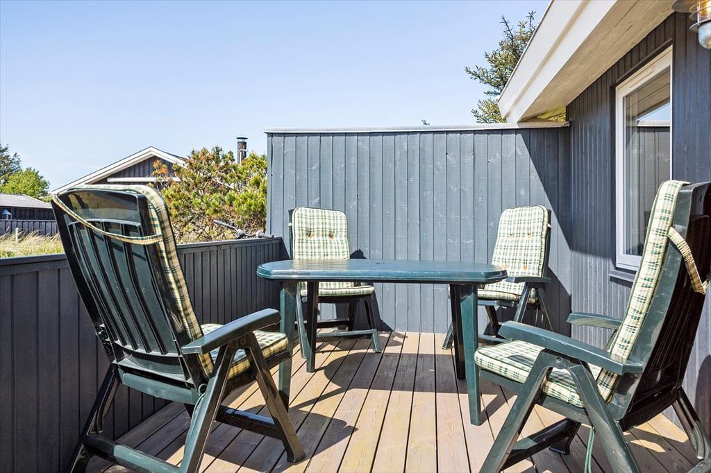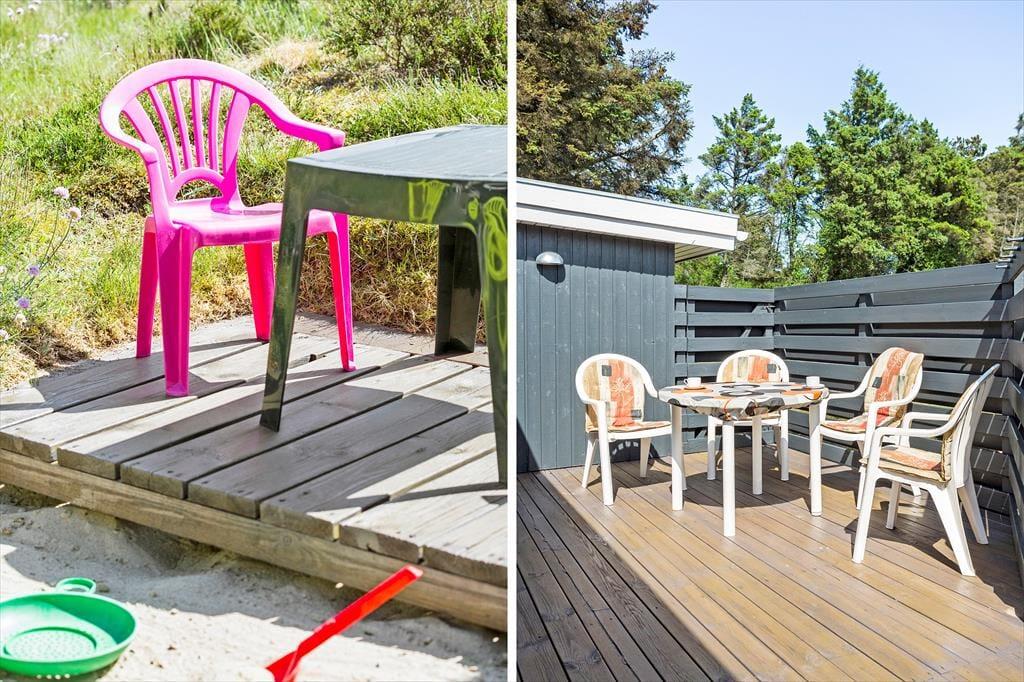Udenfor finder du en rummelig terrasse, der indbyder til afslapning og gode stunder under åben himmel. Her kan du nyde morgenkaffen, mens fuglene kvidrer, eller grille en lækker middag på de lune sommeraftener. Grunden, der omgiver huset, byder på masser af plads til leg og aktiviteter. Dette sommerhus er som skabt til at nyde livet i det fri – både i solskin og i læ for vinden.