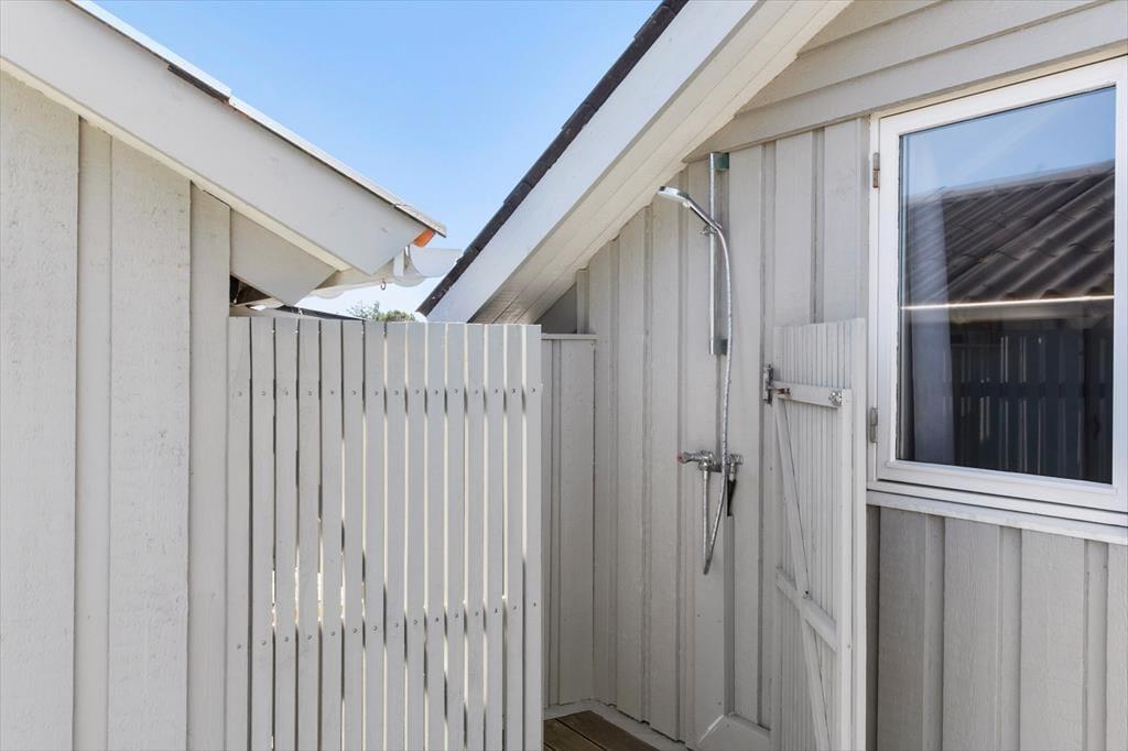 Udendørslivet bliver en sand fornøjelse i dette sommerhus. Den rummelige terrasse indbyder til afslappende dage med solbadning, måltider under åben himmel eller hyggelige aftener med grillen tændt. Og efter en dag på stranden kan du skylle sandet af dig under den udendørs bruser, mens du nyder lyden af bølgerne i baggrunden. Grunden omkring huset giver også plads til leg og udfoldelse for både børn og voksne, og med den friske havluft som baggrund, er dette det perfekte sted at koble af og lade op.