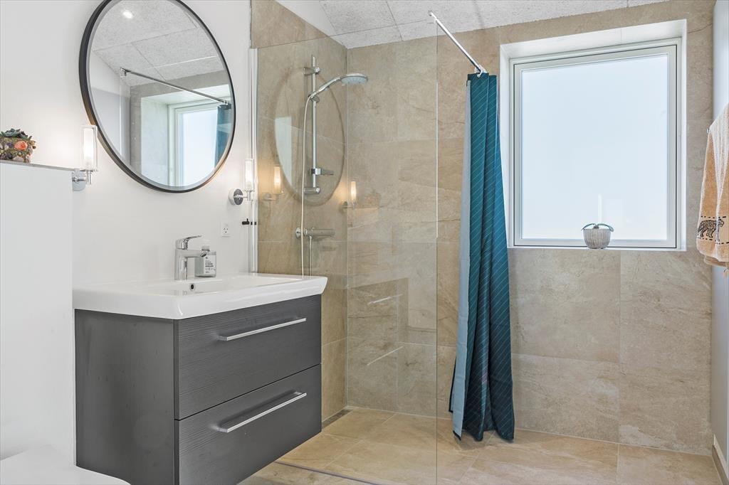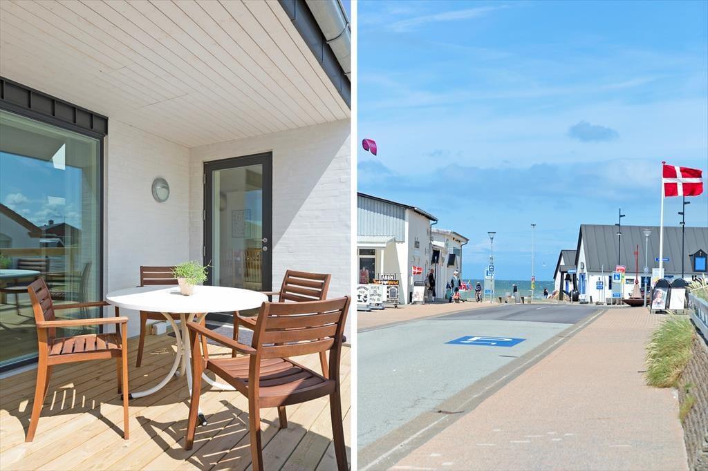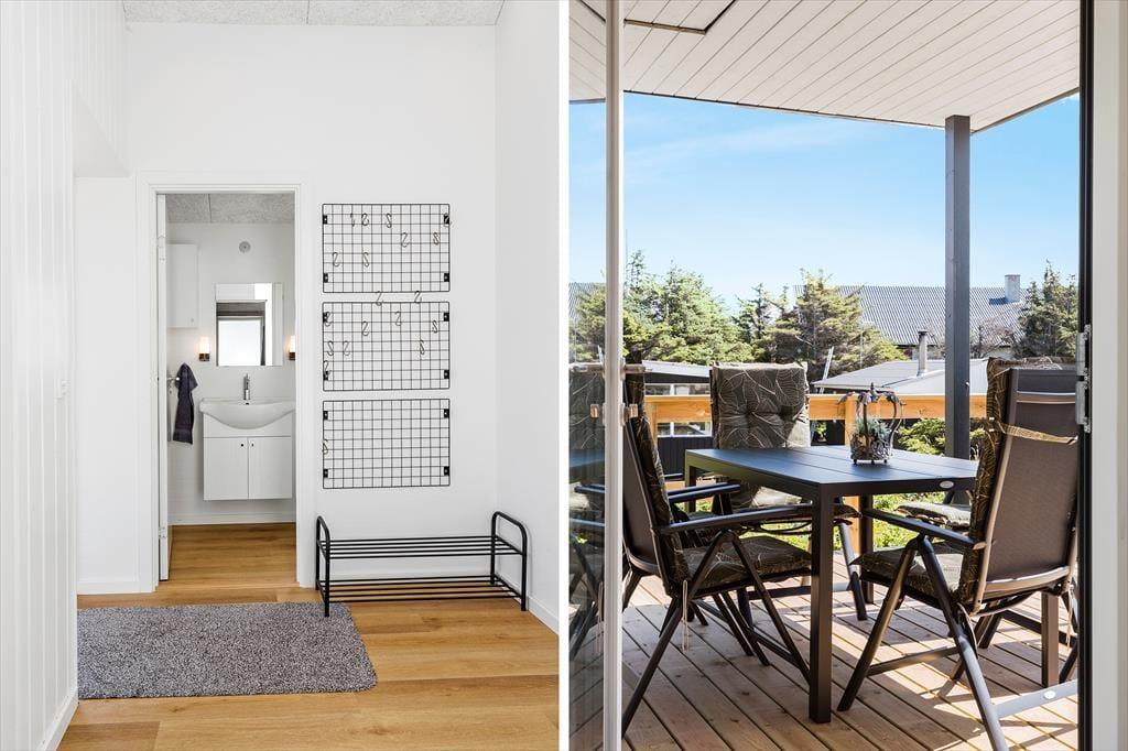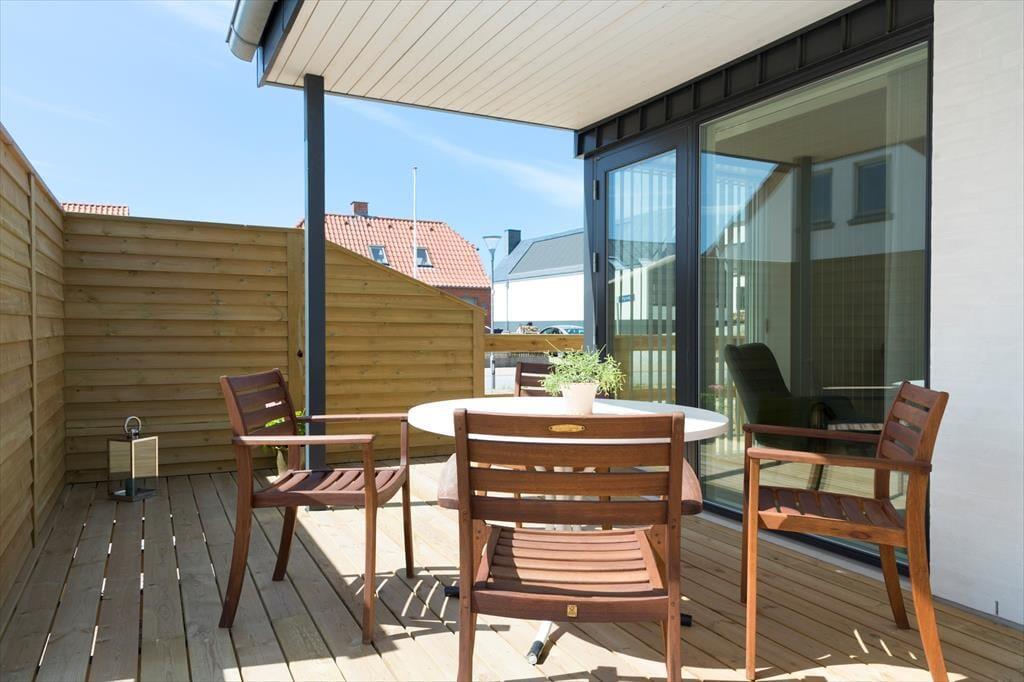 Når vejret indbyder til det, er sommerhusets store terrasse det oplagte samlingspunkt. Her kan du nyde din morgenkaffe, grille lækre måltider eller bare læne dig tilbage og lade solen varme dig. Terrassen er indrettet med komfortable møbler og skærmet mod vinden, så du kan opholde dig ude fra tidlig morgen til sen aften. Når det er tid til at skylle sandet af efter en dag på stranden, tilbyder den udendørs bruser en praktisk og forfriskende løsning. Haven indbyder også til afslapning og leg for både store og små.