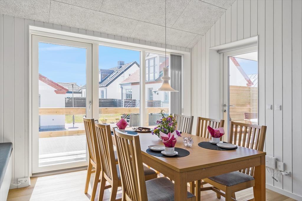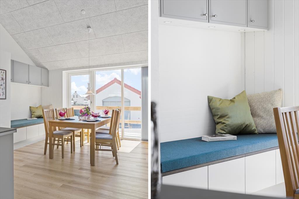 Sommerhuset byder dig velkommen med en indbydende og flot indretning, der straks får dig til at føle dig hjemme. Den åbne stue og spiseafdeling danner rammen om fællesskabet, hvad enten det er til en hyggelig aften med spil eller afslapning med en god bog. Saunaen er en luksuriøs tilføjelse, der indbyder til afslapning og wellness efter en dag ved havet. Huset er indrettet med plads til 6 personer, og hver krog er udnyttet med øje for både funktionalitet og æstetik.