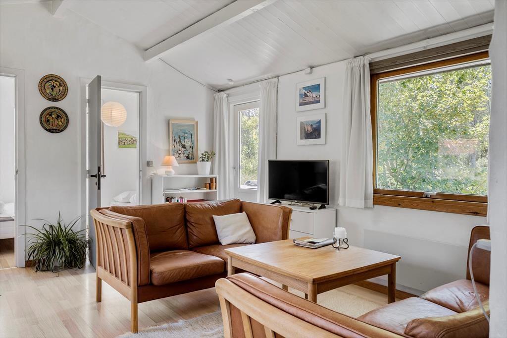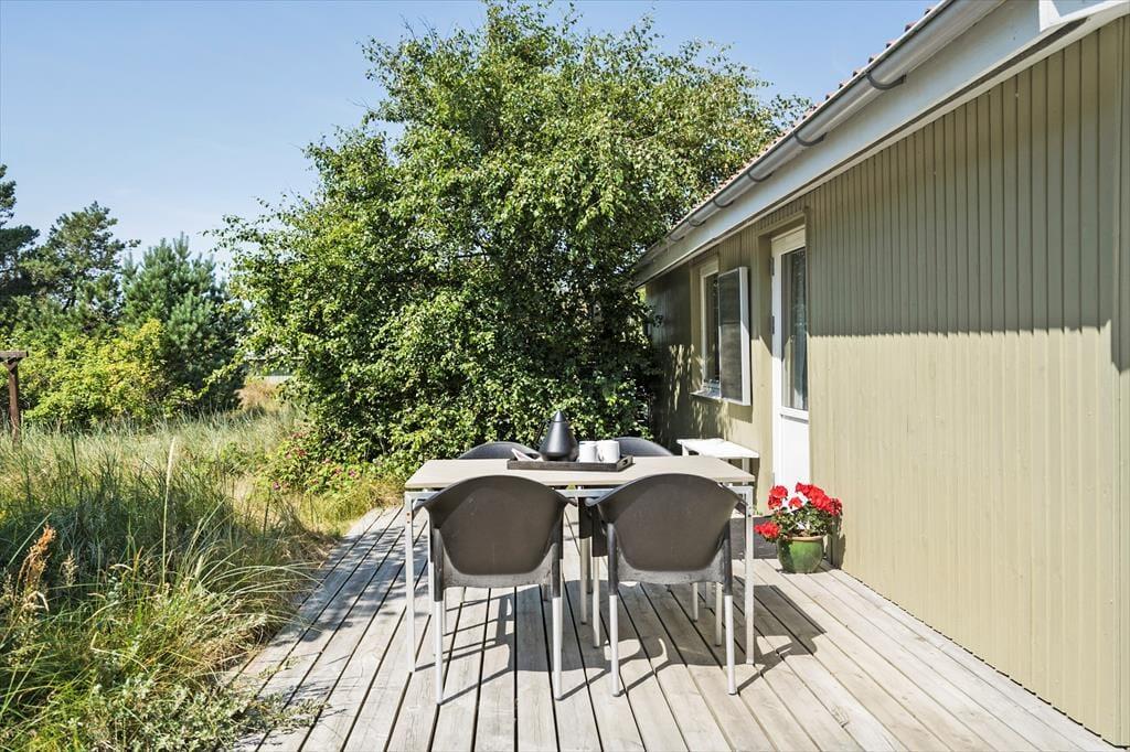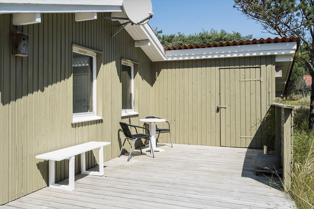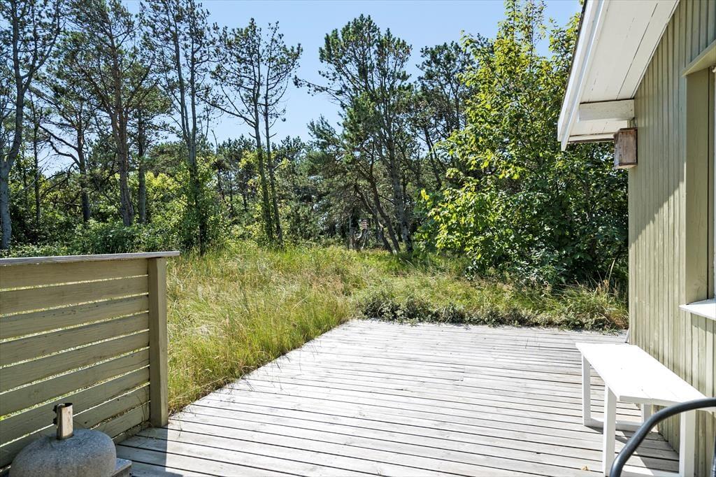 På Sandtornvej 8 er udelivet en integreret del af ferieoplevelsen. Sommerhusets dejlige solterrasse er det oplagte sted at starte dagen med en kop kaffe, mens morgensolen spreder sit lys over den omkringliggende natur. Terrassen inviterer til lange, afslappende timer med solbadning, hygge eller blot en stille stund med fuglesang i baggrunden. Med en fredelig beliggenhed for enden af en vej er dette en oase af ro, hvor I kan nyde naturen i fulde drag.