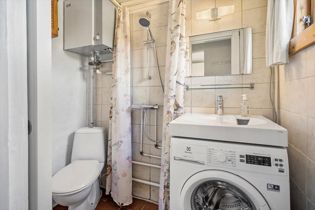Døren til badeværelset er en skydedør - kan ikke låses.