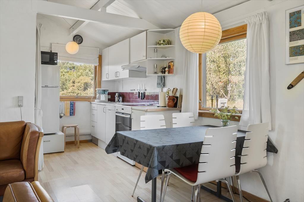 Træd ind i dette hyggelige sommerhus, hvor en varm atmosfære straks møder dig. Med plads til to personer er det ideelt til en romantisk ferie for par eller en afslappende tur for to gode venner. Brændeovnen danner samlingspunktet i stuen, hvor dens knitrende varme skaber en afslappende stemning – perfekt til stille aftener med en god bog eller et glas vin. Huset er enkelt, men praktisk indrettet og har alt, hvad I behøver for at nyde ferien i komfort.