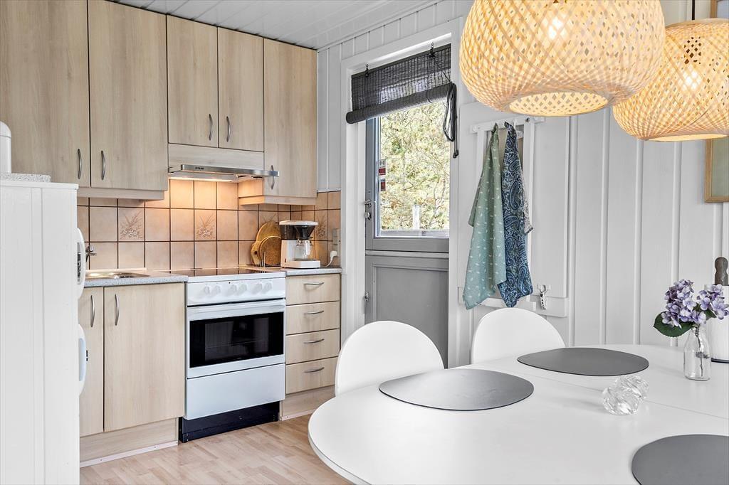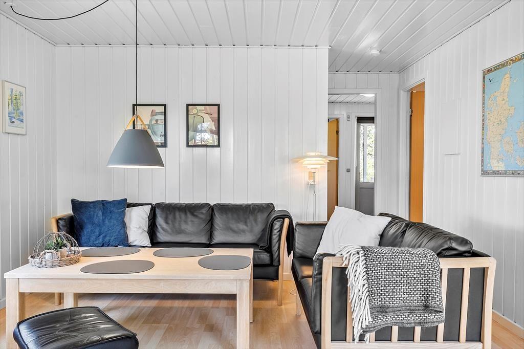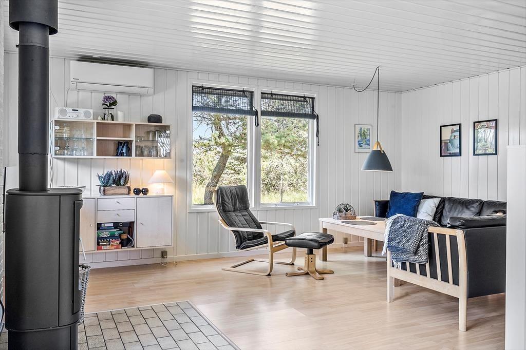 Træd ind i et lyst og indbydende sommerhus, hvor varme og hygge straks omfavner dig. Det velindrettede hus byder på en dejlig stue med en brændeovn, der sørger for en knitrende varme og en stemning, der indbyder til afslapning på de kølige dage. Sommerhuset er udstyret med en energibesparende varmepumpe, så indeklimaet altid er behageligt. Efter en lang dag kan du forkæle dig selv i husets sauna og lade dagens oplevelser falde til ro. Det er et hjem væk fra hjemmet, hvor både store og små kan nyde ferien i afslappede rammer.