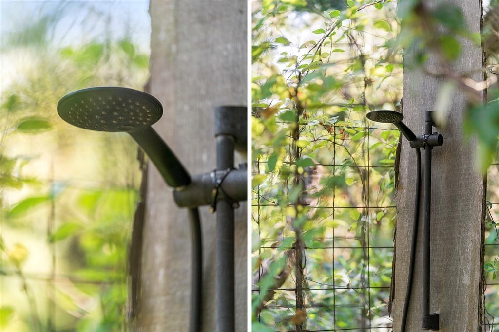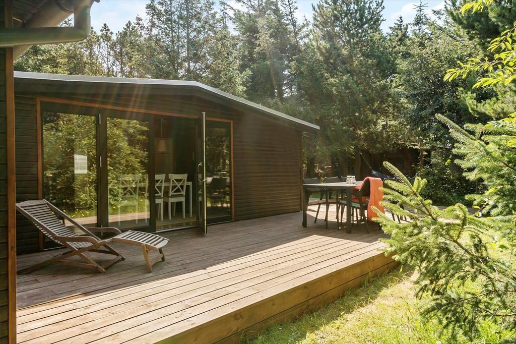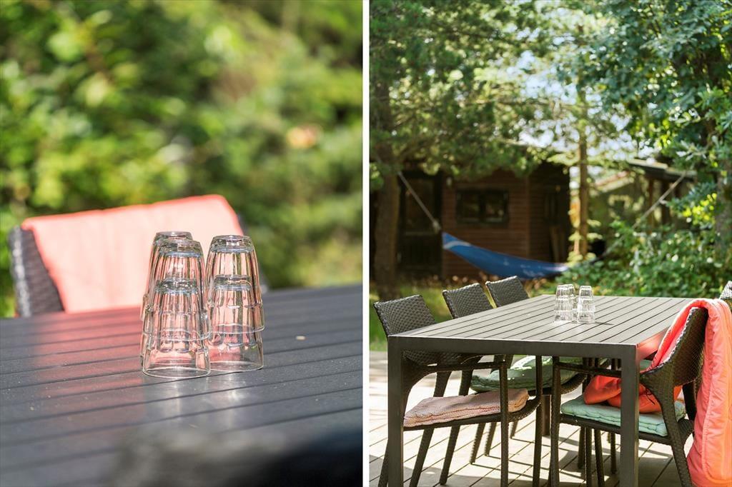 Udenfor venter et skønt terrasseområde, der er perfekt til morgenkaffen, afslappende eftermiddage og hyggelige grillmiddage i solnedgangen. Her kan du trække frisk luft, lade solen varme dig og nyde lyden af fuglekvidder fra de omkringliggende træer. Et særligt højdepunkt er den udendørs bruser, hvor du kan skylle sandet af fødderne efter en dag ved stranden – en luksuriøs måde at opleve naturen på helt tæt hold.