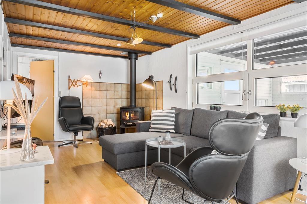 Sommerhuset på Nordsøvej 88 byder dig velkommen med en varm og hyggelig atmosfære. Indretningen er præget af enkelhed og charme, der emmer af ægte sommerhusstemning. I husets hjerte finder du en indbydende stue med en brændeovn, der på kølige aftener spreder varme og hygge. Her kan du nyde samværet med familie eller venner over en god bog, et spil kort eller blot med lyden af brændeovnens knitren i baggrunden. Husets veludstyrede køkken gør det nemt at tilberede lækre måltider, som kan nydes ved spisebordet, mens dagens oplevelser bliver genfortalt.