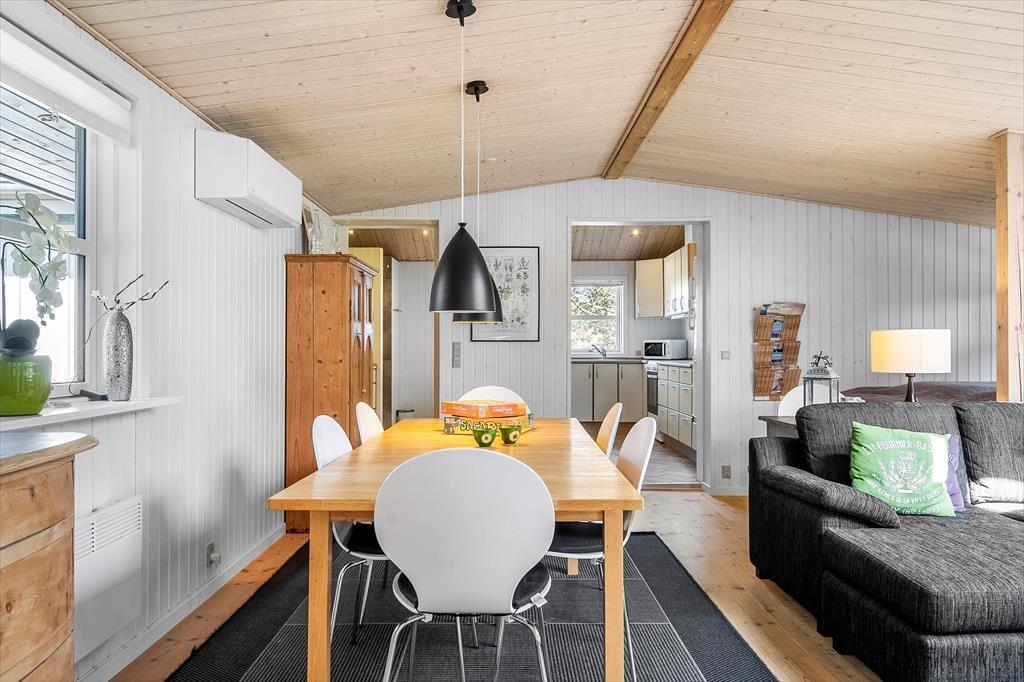 Sommerhuset på Blåmunkevej 49 byder dig indenfor i en varm og indbydende atmosfære. Her er plads til op til seks personer, hvilket gør det ideelt for den lille familie eller en vennegruppe. Den nyere renovering sikrer, at huset fremstår lyst og moderne, mens den hyggelige brændeovn er centrum for mange afslappede stunder, hvor flammernes spil skaber en helt særlig stemning. Forestil dig at samles her efter en dag med eventyr, mens du nyder varmen og lyden af knitrende brænde. Køkken-alrummet er både praktisk og stemningsfuldt, og her finder du alt, hvad du har brug for til at lave lækre måltider og dele dem omkring spisebordet med udsigt til haven.