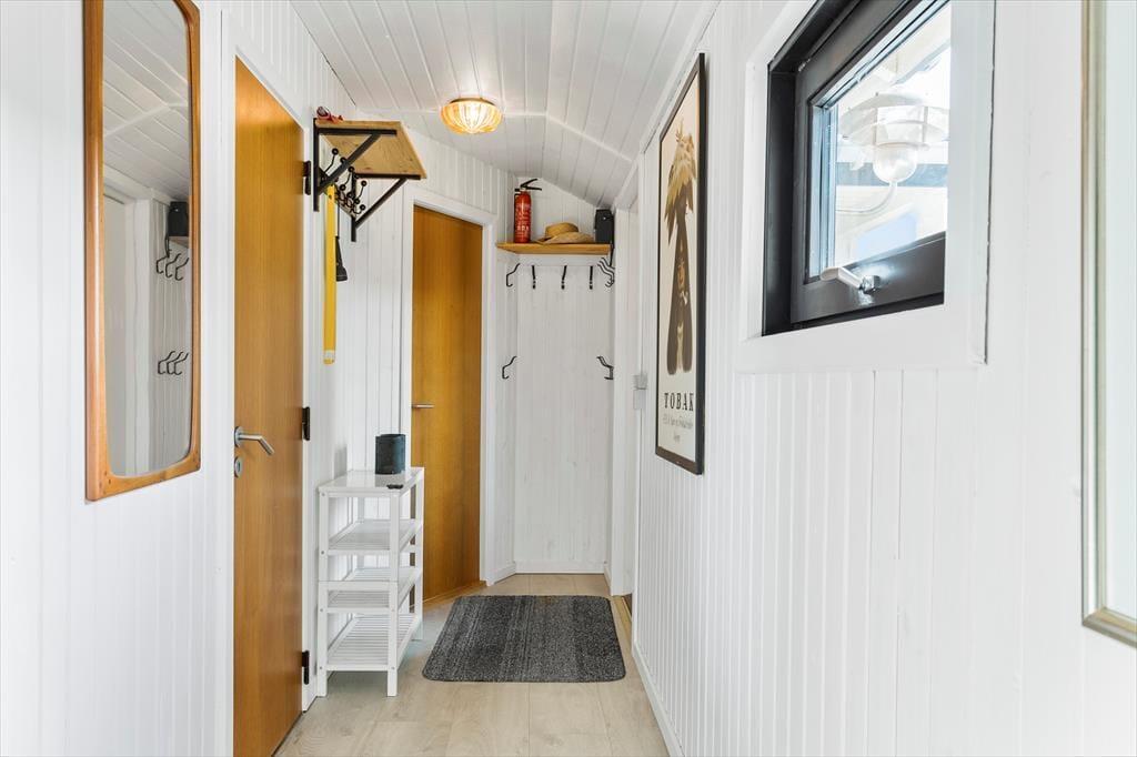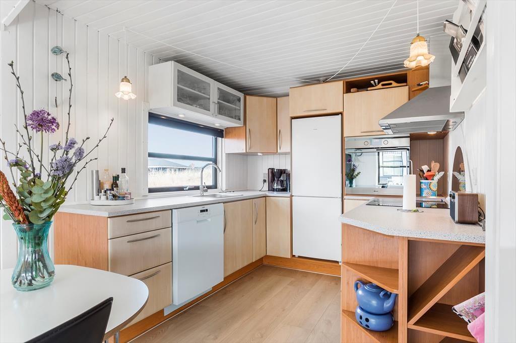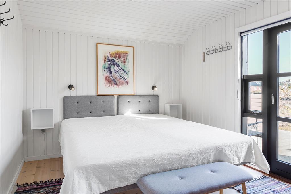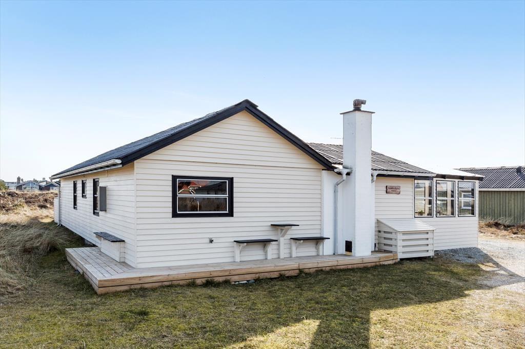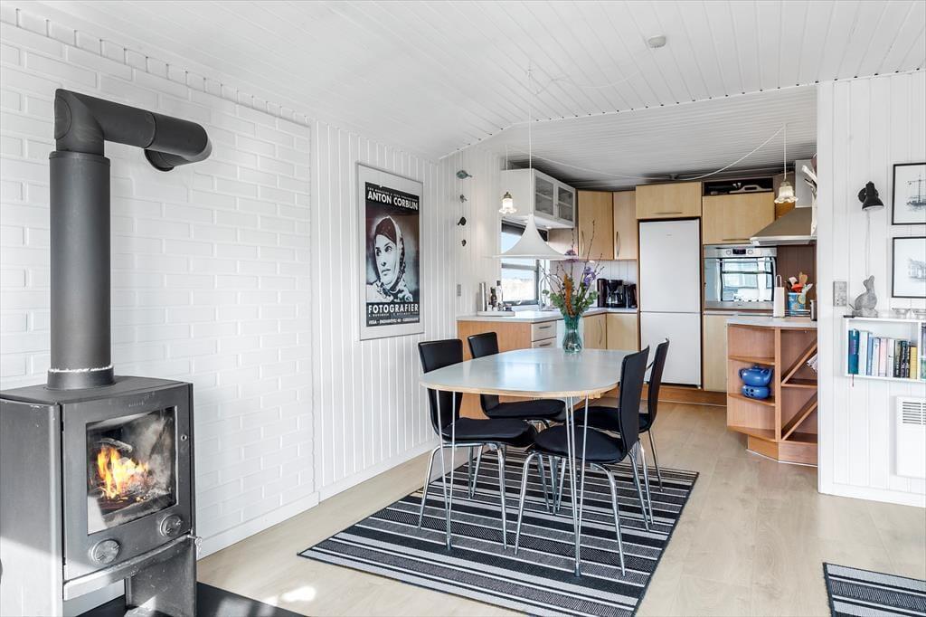 Indenfor møder du et stemningsfuldt sommerhus med en varm og indbydende atmosfære. Den kombinerede opvarmning fra varmepumpe og brændeovn gør det behageligt at opholde sig her året rundt – uanset om I ønsker at varme jer efter en frisk gåtur ved Vesterhavet eller blot nyde en afslappet aften med knitrende ild i ovnen. Sommerhusets rummelige indretning og lysindfald fra de store vinduer skaber en følelse af velvære, hvor du kan slappe af og finde ro i hver en krog. Her er alt, hvad du behøver for at lade hverdagen blive hjemme og fokusere på hyggen med dem, du holder af.