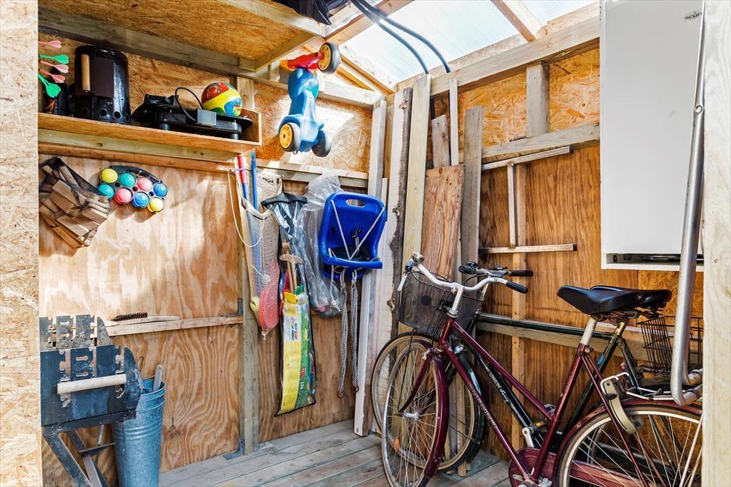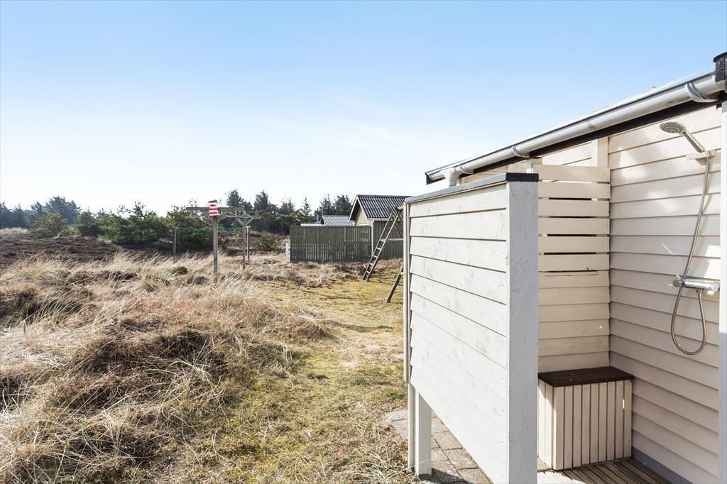 Udenfor er huset omkranset af en dejlig grund med plads til leg og aktiviteter. Terrassen indbyder til hyggelige stunder med alt fra morgenkaffe til grillmiddage under åben himmel. Når solen skinner, kan I finde et lunt spot i haven, og skulle vejret drille, giver overdækkede områder jer mulighed for at nyde udelivet alligevel. De naturskønne omgivelser omkring sommerhuset gør det oplagt at tilbringe tid i det fri, hvor både to- og firbenede gæster kan boltre sig.