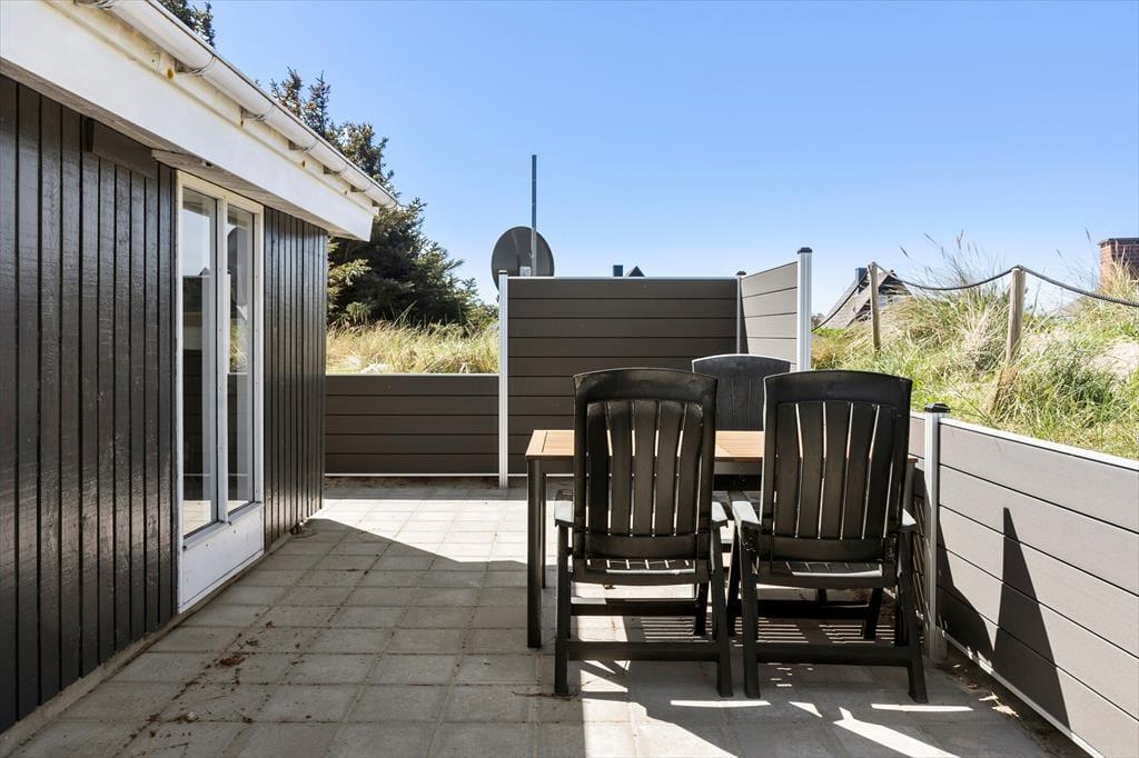 Udenfor venter en dejlig terrasse og en grøn have, der indbyder til både afslapning og aktiviteter. Terrassen er ideel til lange grillmiddage eller en stille stund med en god bog, mens haven giver plads til leg for både børn og hunde. Den fredelige beliggenhed gør, at du kan høre fuglene kvidre og nyde den friske havluft fra morgen til aften.